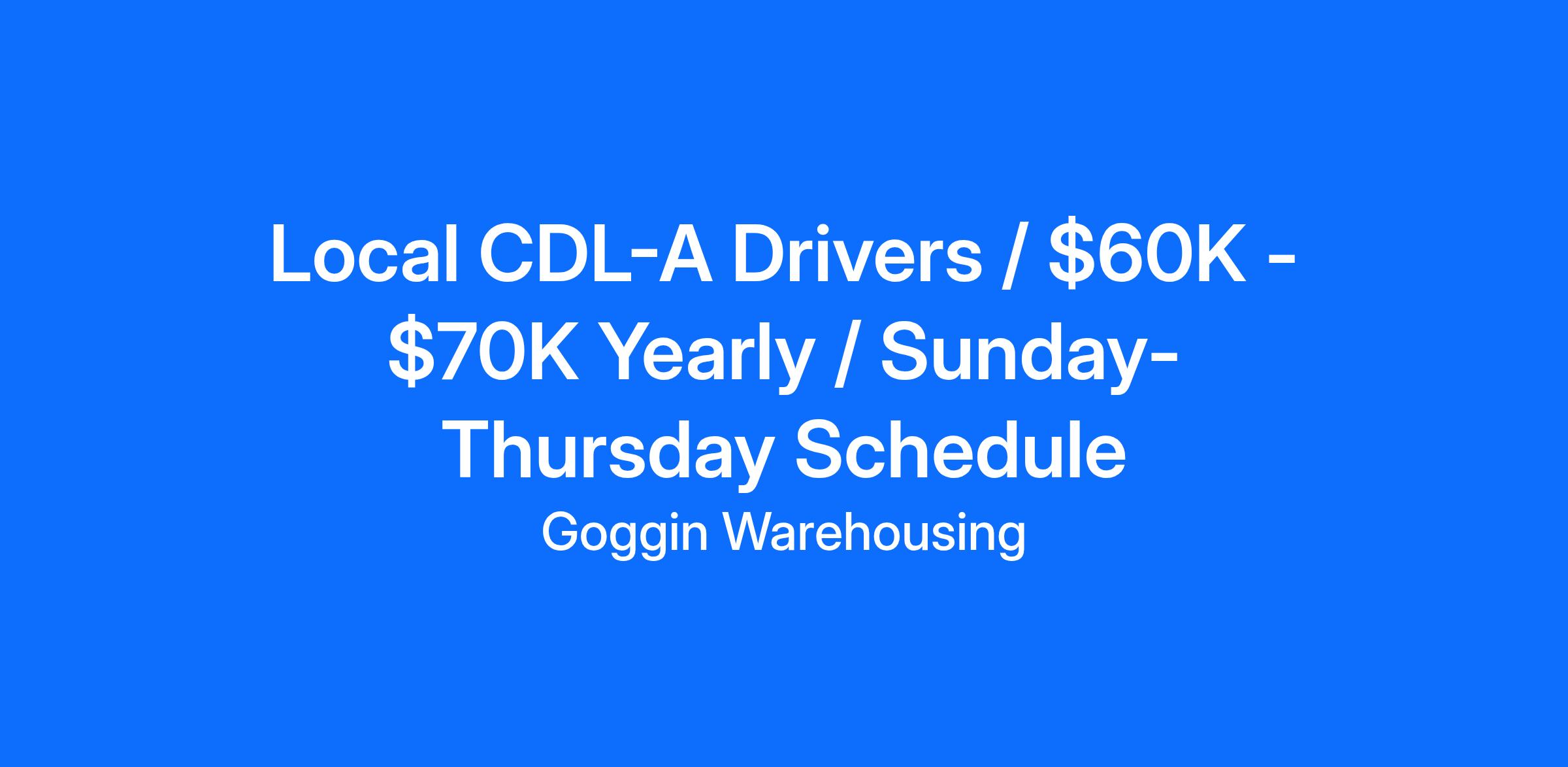 Local CDL A Tanker Truck DriverWeekly Pay: $1,250 - $1,800Yearly Pay $60,000 - $70,000 / YEAR Goggin is hiring CDL A Local Tanker Truck Drivers in Chattanooga, TN. CDL A Local Tanker Truck Driver Job Description:As a local driver for Goggin at this location, you will be responsible for delivering chicken feed to our customers? chicken farms within the area.This position does pay by the load and you will be expected to haul a minimum of 18 loads per week. CDL A Local Tanker Truck Driver Job Benefits:Drivers earn $60,000 to $70,000Sunday-ThursdayStart time 4pm to 5pmLocal & home dailyPaid weekly w/ direct depositMedical w/ 3 plans to choose from to fit your needsDental & Vision$15,000 company paid Life insurancSTD, Life, Accidental & Critical Care insurance availablePaid holidays & vacation401K with company matchSafety & Performance Based Raises CDL A Local Tanker Truck Driver Job Requirements:Valid Class A CDLTanker or Hazmat endorsements are not requiredPrior feed experience is not requiredMust have 1 year of OTR tractor trailer experienceMust be able to drive a manual shift transmission About Us:Whether you are looking to stretch your legs on the open road, within the city streets, or in the countryside, we can try to find something for you. We have home daily, weekly, and then some. We have drivers pulling dry vans, flatbeds, tankers, wagons, and reefers.Goggin operates 35 locations across 7 states. We want our team to have the best drivers that are out there on it. If you want to feel appreciated and treated like you deserve, contact us now and let us get you rolling.Since 1998, Goggin Warehousing has specialized in providing full-service warehousing, transportation, and distribution solutions to a wide range of businesses and manufacturing organizations. Through our dedicated fleets at our many locations, we strive to provide more to our customers and employees.Whether you are looking to stretch your legs on the open road, within the city streets, or in the countryside we can try to find something for you. We have home daily, weekly, and then some. We have drivers pulling dry vans, bulk tankers, wagons, and reefers. So as you see, we provide more.