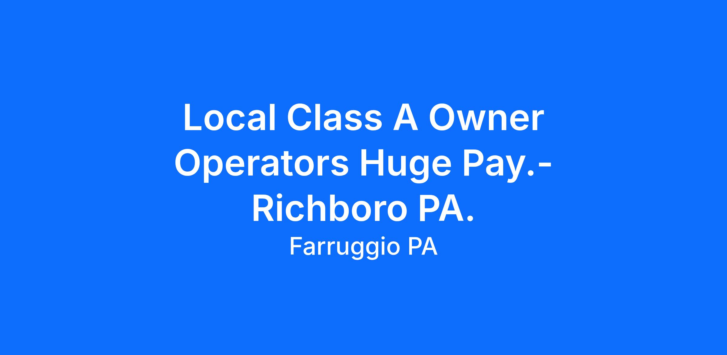 Local Class A Owner Operators Huge Pay.- Richboro PA.