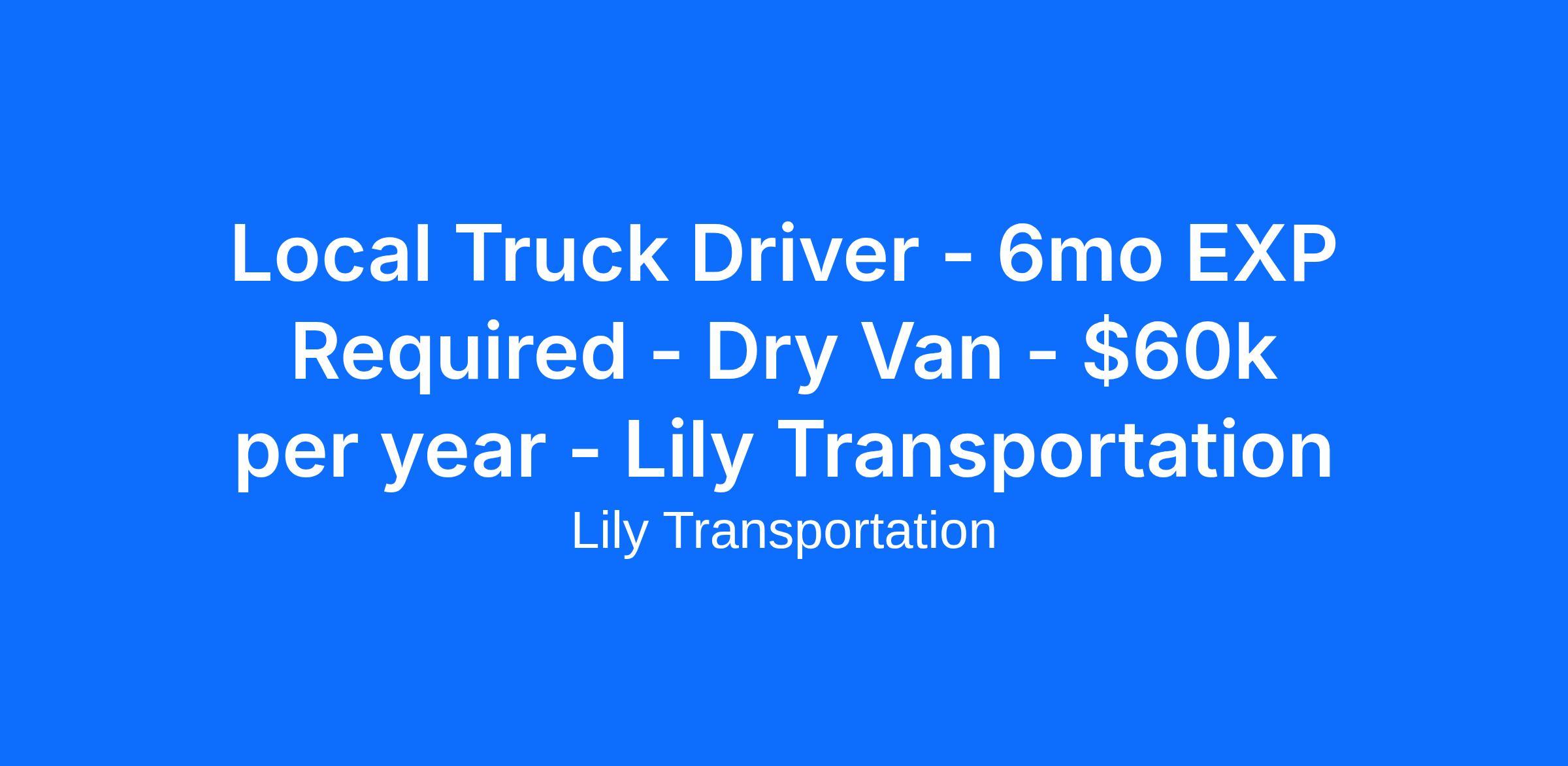 We realize that in today's job market you have many driving options. Lily strives to offer you the perks, work schedule and reliable equipment you're looking for so that you can rest easy in your decision to make Lily Transportation the final stop in your driving career search. Pay Range: 1100.00-1100.00 per_week, General Benefits: Local CDL-B Truck Driver Benefits + Perks: Blue Cross Blue Shield - medical and dental Vision Insurance 401k with matching company contribution Paid Time Off - Vacation, Sick Get 6 Paid Holidays EveryYear Incentive and Recognition Programs Employee Assistance Plan (EAP) Quarterly + Annual Safety Bonuses Cell Phone Allowance Company branded clothing plus Red Wing boots up to ($130.00 voucher) Elite Driver Program Awards Room for Advancement