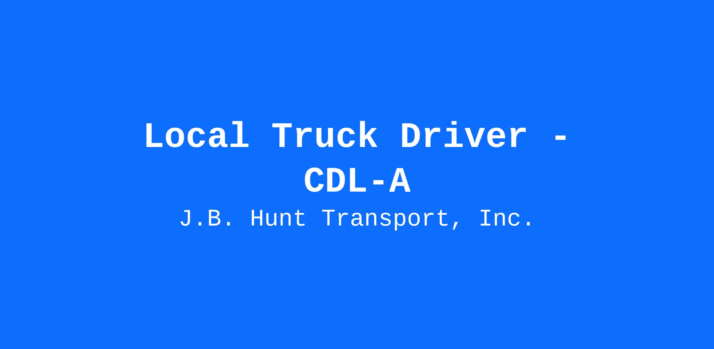 Looking for dedicated truck driving jobs? J.B. Hunt is hiring local CDL-A drivers! Become a Dedicated Contract Services® driver and start enjoying consistent freight and deliveries for a single customer. Job Details: Average $85,000 per year $1,600 minimum weekly pay guarantee for the first 6 weeks Safety bonus opportunities Daily home time Onsite management Paid online orientation Driver Benefits: PTO accrues from day one 401(k) with company match Eligible for medical, dental and vision coverage after just 30 days Access to life insurance options Access to mental health and disability benefits Don't wait – join North America's largest dedicated provider today! Call 1-877-###-#### or pre-qualify online at DriveJBHunt.com.a25371ca-cde7-4fb6-ba87-2cf40b156c8b