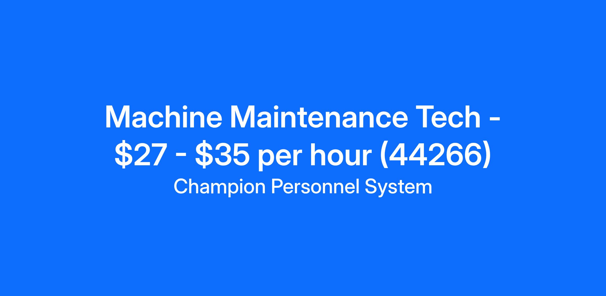 Machine Maintenance Tech - $27 - $35 per hour (44266)