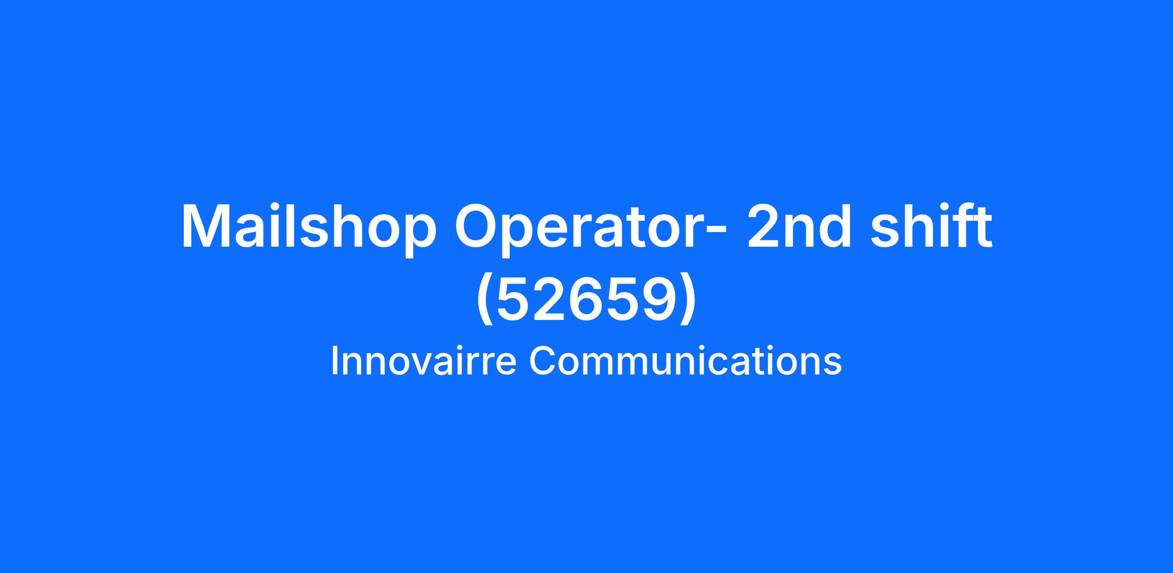 Job SummaryWe are seeking a full-time Machine Operator experienced or willing to learn our business. This position is responsible for operating or assisting in a direct mail manufacturing environment with a focus on reduction in cost related errors, exceeding client expectation, and driving a safe workplace. Looking for a long-term career, look no further.