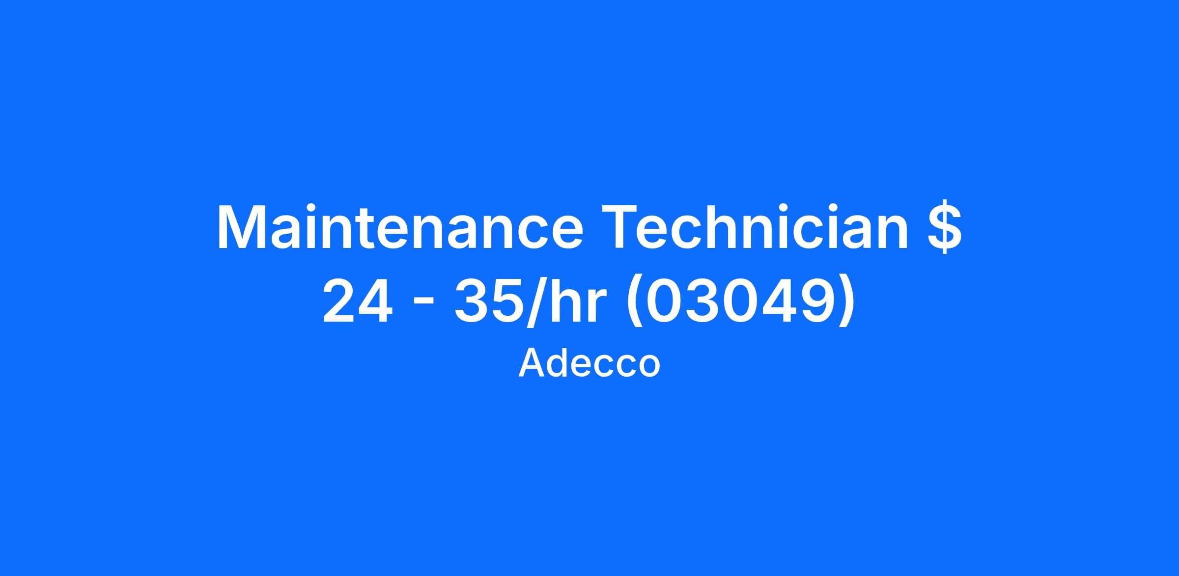 Maintenance Technician $ 24 - 35/hr (03049)