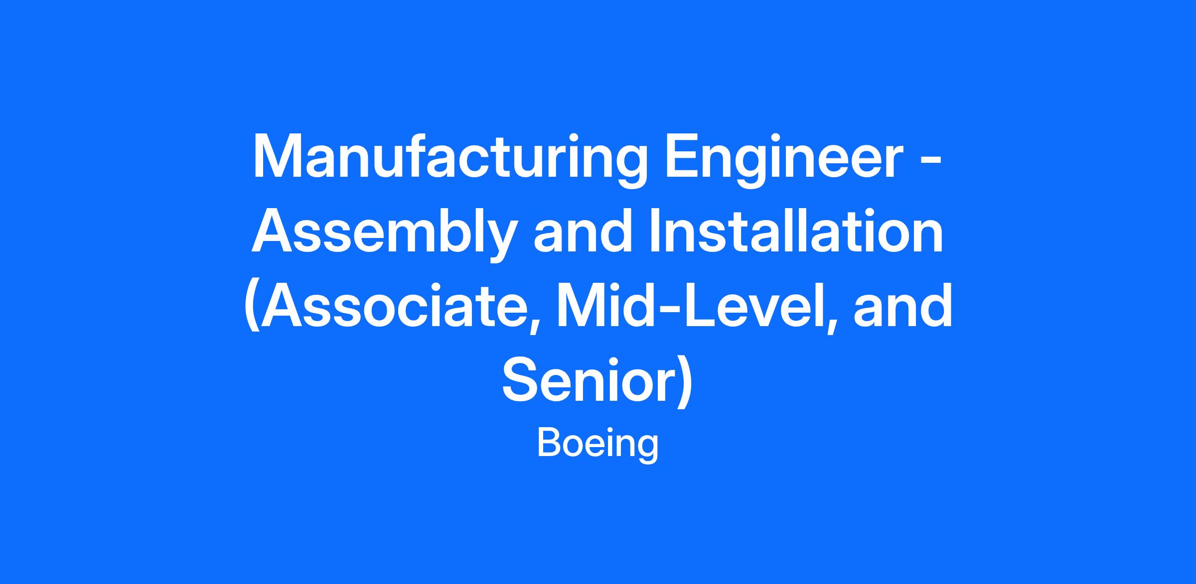 Manufacturing Engineer - Assembly and Installation (Associate, Mid-Level, and Senior)