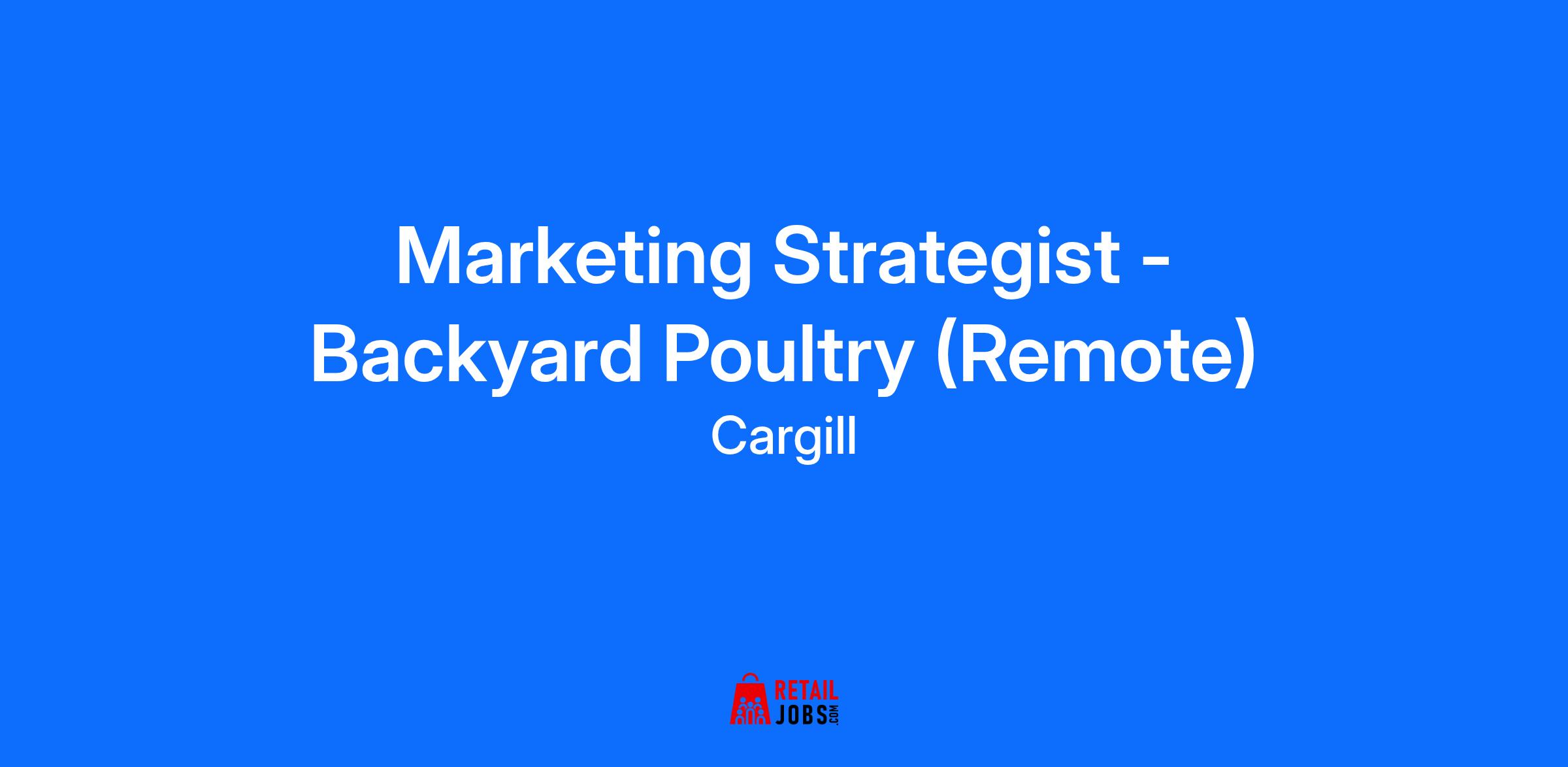 Cargill’s size and scale allows us to make a positive impact in the world. Our purpose is to nourish the world in a safe, responsible and sustainable way.Cargill is a family company providing food, ingredients, agricultural solutions and industrial products that are vital for living. We connect farmers with markets so they can prosper. We connect customers with ingredients so they can make meals people love. And we connect families with daily essentials — from eggs to edible oils, salt to skincare, feed to alternative fuel. Our 160,000 colleagues, operating in 70 countries, make essential products that touch billions of lives each day. Join us and reach your higher purpose at Cargill. This position is in Cargill’s animal nutrition and health business, where we improve animal lives through better nutrition. Our team researches, innovates and creates solutions that deliver healthy results for our customers. Job Purpose and Impact The Marketing Strategist of Backyard Poultry is a strategic growth leadership position for high-profile growth brands in the retail poultry nutrition space. The role requires a strong marketing strategist to solve customer problems by developing strategy, building solutions and executing marketing plans that help our customers win. This role will recommend where strategic investments should be made and execute current innovation plans set to build out the future growth strategy for the segment. You will work on connecting the identified opportunities with a relevant portfolio and link with other projects and initiatives to ensure alignment to the overall organizational strategy. You will partner with teams to create and implement marketing materials, optimize the product portfolio and bring new products, services and solutions to the market. You will be a strategic partner to your customers, sharing market insights, creating marketing plans, leading key projects and overseeing the project portfolio to ensure best in class strategies on value creation for both the customer and the organization. In this role, you will be key in the growth drivers of priority businesses and define strategic priorities to grow margin and volume. Key Accountabilities Partner collaboratively in defining strategic priorities including markets, growth drivers, portfolio, capabilities and investments Consult with customers utilizing market insights to drive strategy with innovation and business support. Create and implement marketing plans for new products, services, solutions and training to drive customer success. Collaborate in the development and implementation of marketing materials to successfully bring the product portfolio to market. Define the future growth strategy and manage the United States projects portfolio. Define priorities and brand strategy, while balancing long and short-term goals with risks and overall fit to the strategy. Ensure that best practices are in place for project management and establish and implement clear metrics and tracking systems for the portfolio. Provide expert thought leadership in your field and work with limited direction, using additional research and interpretation to identify issues or problems. You may provide direction to supporting team members and be a strategic contributor. Other duties as assigned This position is open to a remote home-office work arrangement anywhere in the United States. Qualifications MINIMUM QUALIFICATIONS Bachelor’s degree in a related field or equivalent experience Experience managing budgets and utilizing business decision metrics Experience in go to market strategies (leading projects, handling resources, preparing launches and tracking results) Experience in the Consumer Packaged Goods industry or Food and Beverage industry Minimum of six years of related work experience Ability to travel up to 25% PREFERRED QUALIFICATIONS Master’s degree or Master’s in business administration (MBA) degree Experience in the Retail industry or Pet Food industry Business consultancy experience Compensation Data The expected salary for this position is $130,000-$170,000. Compensation varies depending on a wide array of factors including but not limited to the specific location, certifications, education, and level of experience. The disclosed range estimate may be adjusted for any applicable geographic differential associated with the location at which the position may be filled. This position is eligible for a discretionary incentive award. The incentive award amount is dependent upon company performance and your personal performance. At Cargill we put people first. As part of your overall rewards, we offer a comprehensive benefit program including medical and/or other benefits dependent on the position offered and hours worked. Visit: https://www.cargill.com/page/my-health/mh-health-and-wellness to learn more (subject to certain collective bargaining agreements for Union positions). Minnesota Sick and Safe Leave accruals of one hour for every 30 worked, up to 48 hours per calendar year unless otherwise provided by law. LI-HS1 themuse fbg LI-Remote Equal Opportunity Employer, including Disability/Vet. Salary: . Date posted: 09/27/2025