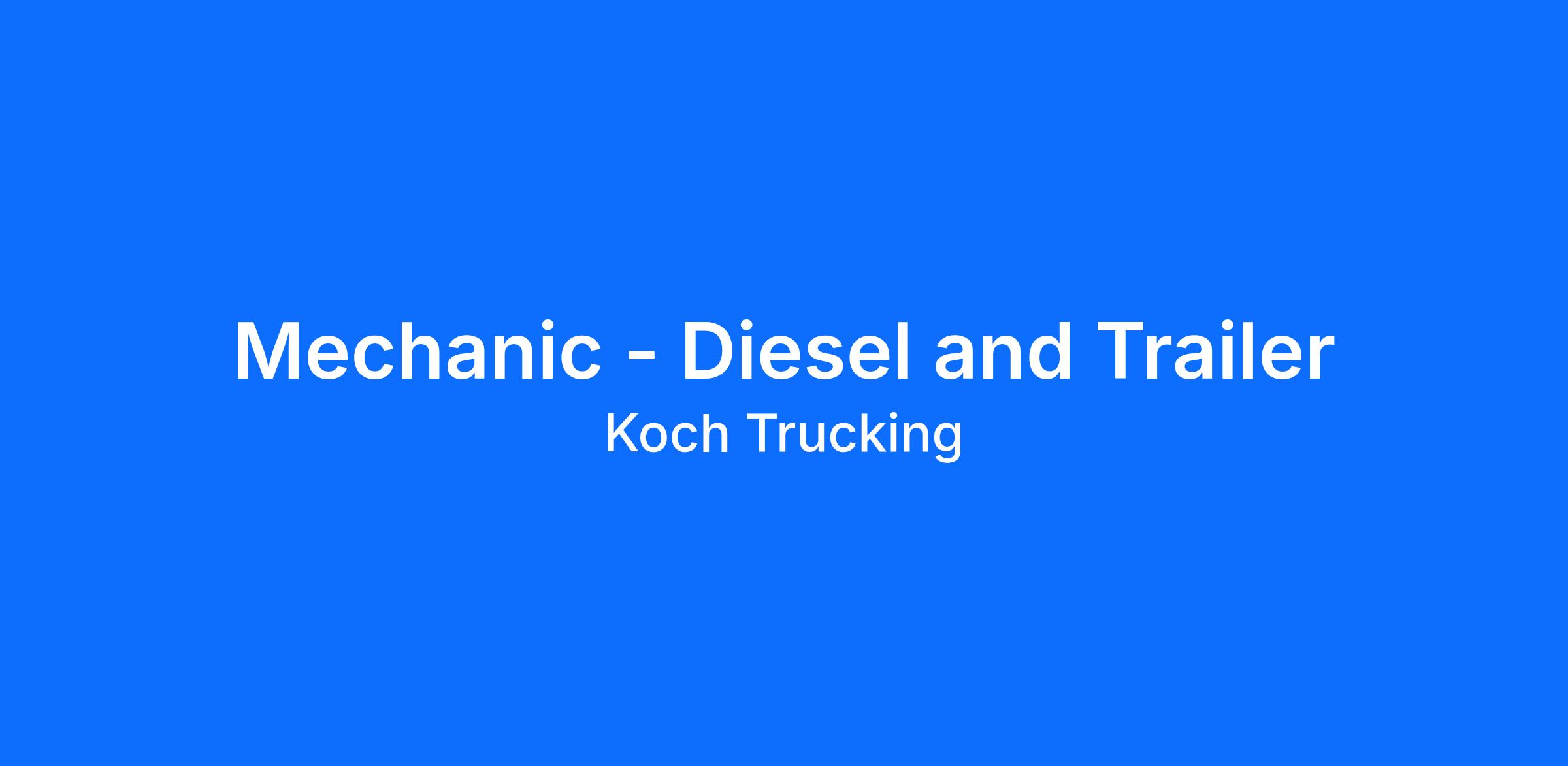 Koch Trucking Inc is Hiring Diesel and Trailer Technicians! St. Paul, MN | NE Minneapolis, MN | Roseville, MN Great Pay $1,120-$1,560 per week Sign-On Bonuses Disel Tech : $7,500 Refrigeration Tech : $10,000 Allowances $1,000 Tool Allowance per year, $300 Boot Allowance per year Diesel Technician II Benefits: Pay $28.53-$39.93 (starting pay within this range will be based on relevant experience) $1,120–$1,560 per week $5/hour shift differential Location: St. Paul 1st Shift: Wed–Fri: 5:30 AM – 4:00 PM & Sat: 4:30 AM – 3:00 PM 2nd Shift: Mon–Fri: 3:30 PM – 12:00 AM Location: Northeast Minneapolis, MN 1st Shift: Sun–Wed: 7:00 AM – 5:30 PM Mobile & Shop Refrigeration Technician Benefits: Pay $32.24-$45.78 (starting pay within this range will be based on relevant experience) $1,280–$1,800 per week Location: Roseville, MN 1st Shift: Mon–Fri: 7:00 AM – 3:30 PM Technician Benefits (All Roles) Benefits $6,000 sign-on bonus Time & a half on all weekend shifts $1,000 annual tool allowance $300 annual boot allowance HSA with generous company match Medical coverage through the largest nationwide network FREE online medical & mental healthcare for you & your immediate family 401(k) with immediate company match 6 paid holidays 3 floating holidays Tuition reimbursement for heavy equipment training Hands-on training with modern tools & industry-specific software Mechanic Qualifications High school diploma or equivalent Minimum 2 years of tractor maintenance experience Ability to independently complete advanced repairs Minimum 2 years of refrigeration maintenance and repair experience, including relevant certifications (Mobile Tech only) Willingness to travel to multiple locations as part of a mobile service role (Mobile Tech only) About Koch Trucking Inc At Koch, you'll be part of a company that values a friendly, casual, and inclusive working environment. We're committed to your growth and success, offering opportunities for career development, access to current technology, and a culture that prioritizes mental, physical, and emotional well-being through robust wellness programs. You'll also enjoy competitive pay, comprehensive benefits, and the chance to make a meaningful impact in an organization that truly values its employees.a25371ca-cde7-4fb6-ba87-2cf40b156c8b