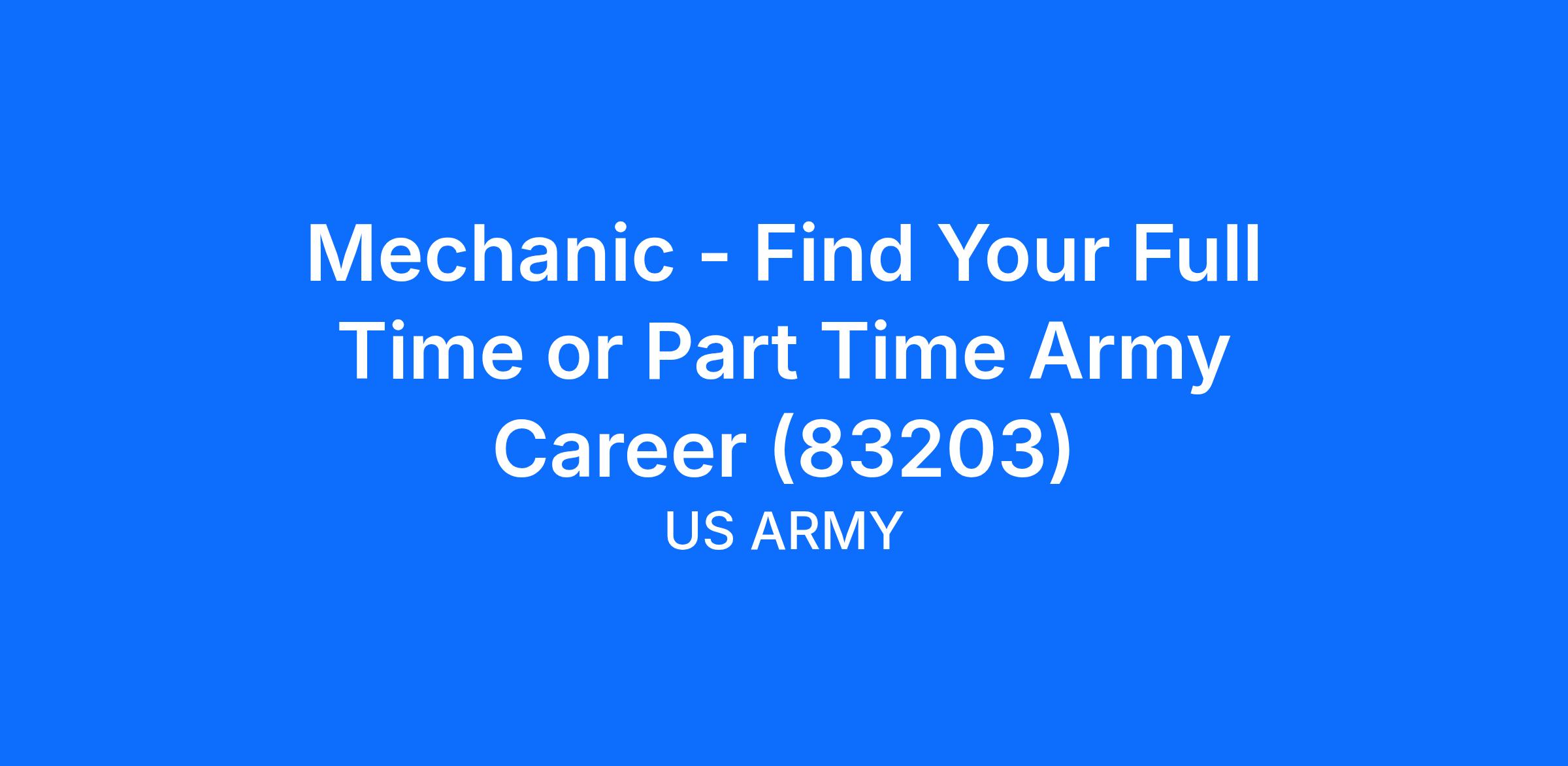 Mechanic - Find Your Full Time or Part Time Army Career (83203)