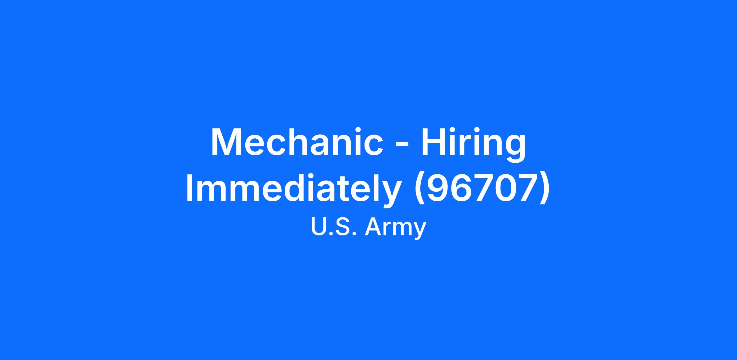Mechanic - Hiring Immediately (96707)