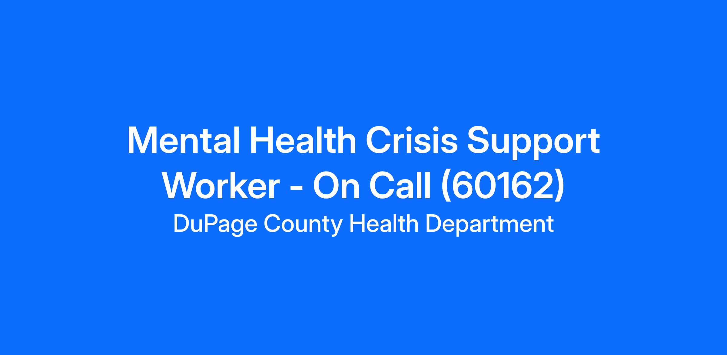 Do you want to make a difference in the lives of others? Your skills, experience, and passion are needed on our team. We are looking for new on-call team members to join us, at our Crisis Recovery Center, to work as Crisis Services Technicians. This is an exciting opportunity to part of the expanding crisis services at the DuPage County Health Department!