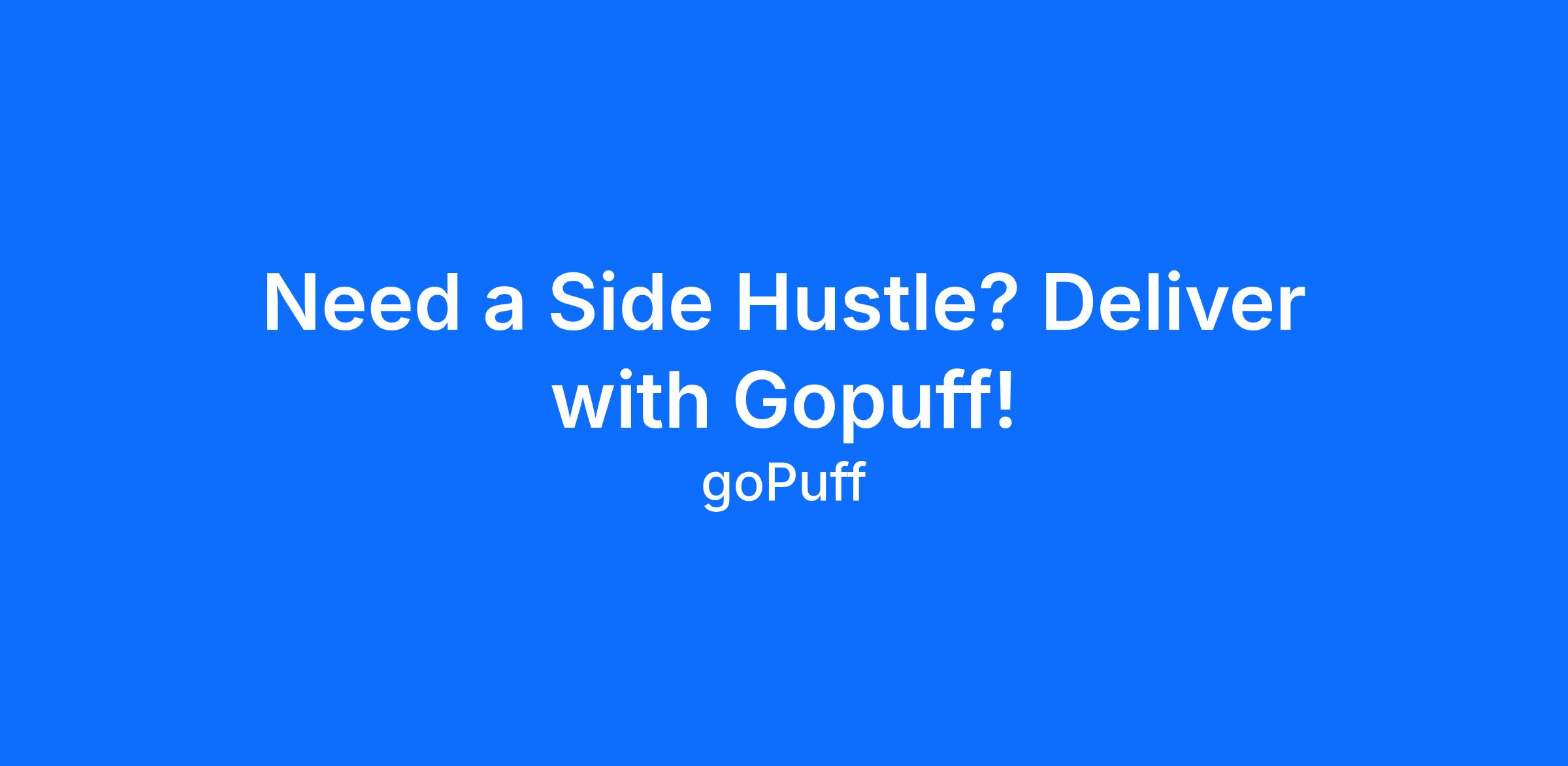 Do more than make ends meet. Deliver with Gopuff and get paid to deliver what your neighbors need from a Gopuff facility near you! With one centralized pickup location and smaller delivery zones, Gopuff makes earning effortless. It's simple: deliver from a facilitynear you straight to the customer! You'll be delivering everyday essentials, from cleaning supplies, home needs and OTC medications to food, drinks and more.