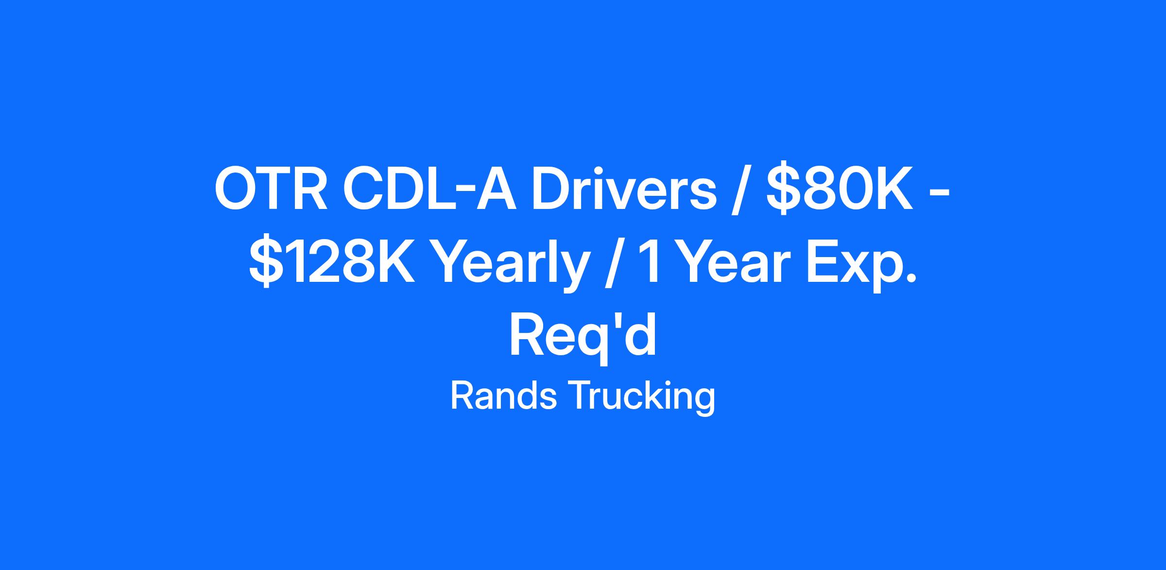 OTR CDL-A Drivers / $80K - $128K Yearly / 1 Year Exp. Req'd