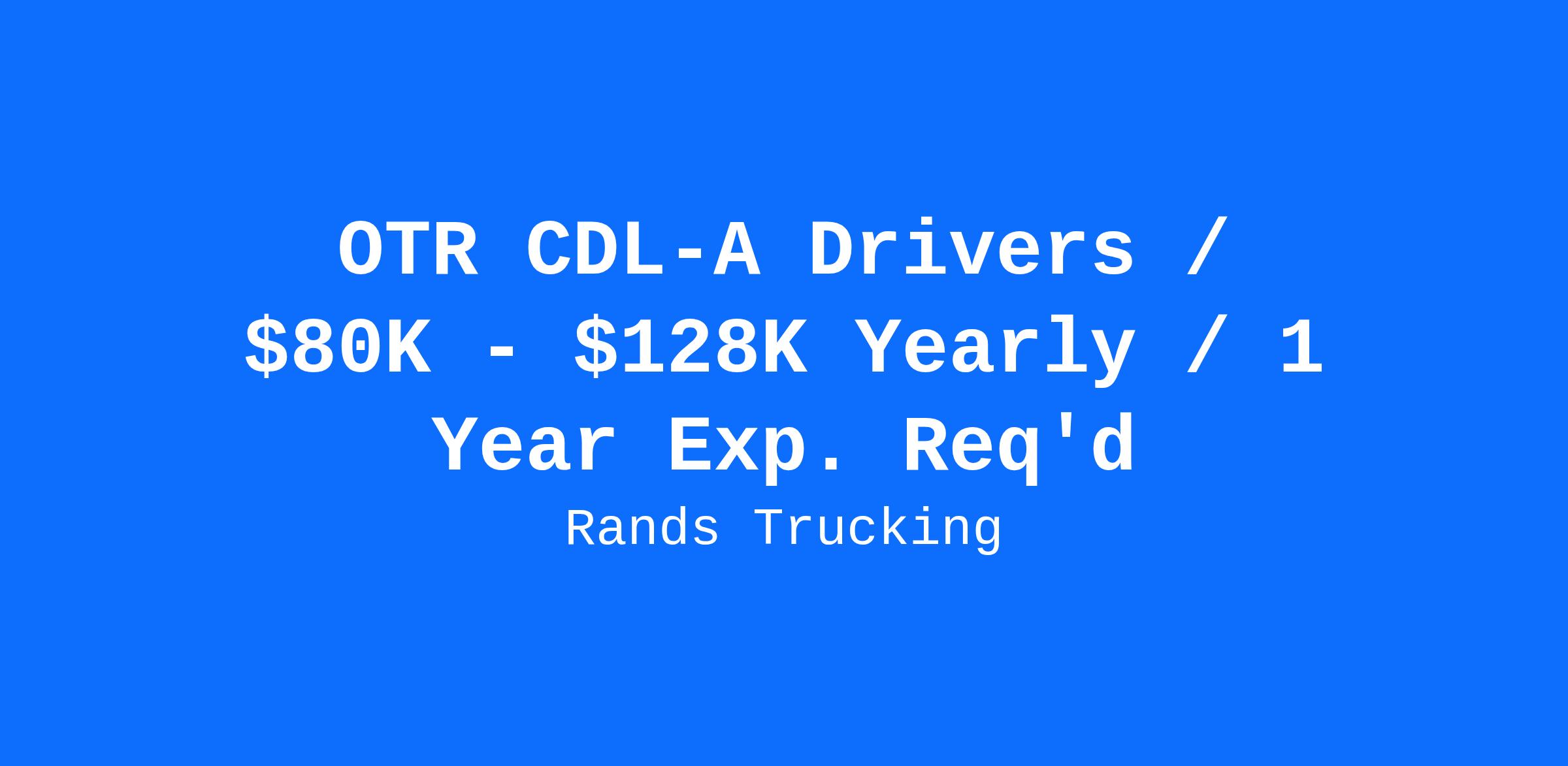 OTR CDL-A Drivers / $80K - $128K Yearly / 1 Year Exp. Req'd