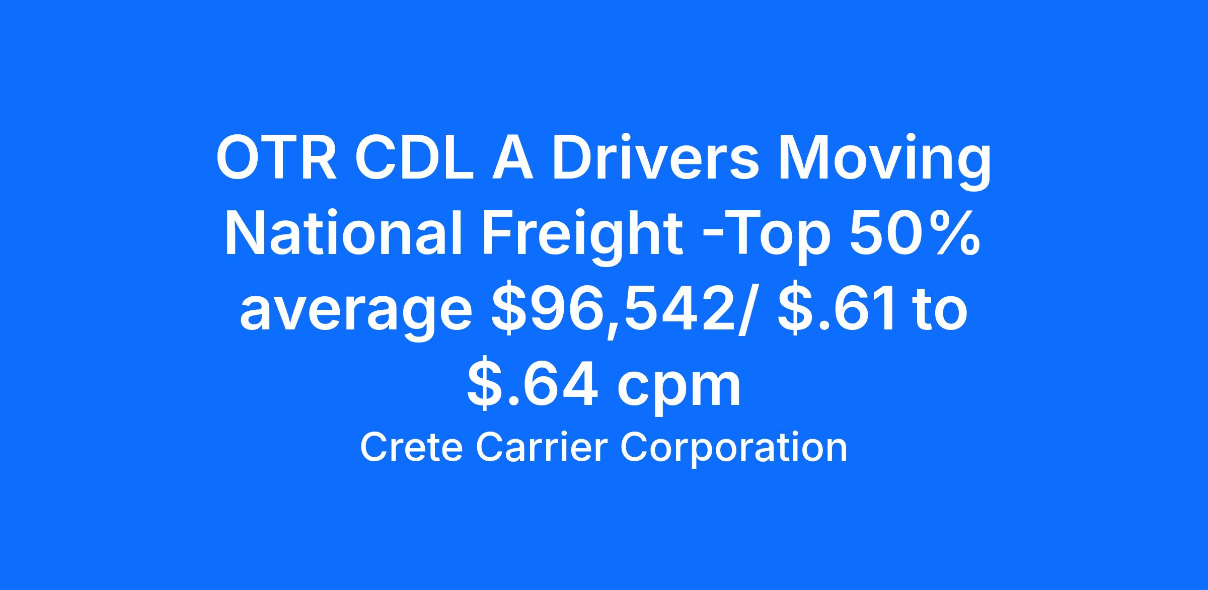 OTR CDL A Drivers Moving National Freight -Top 50% average $96,542/ $.61 to $.64 cpm