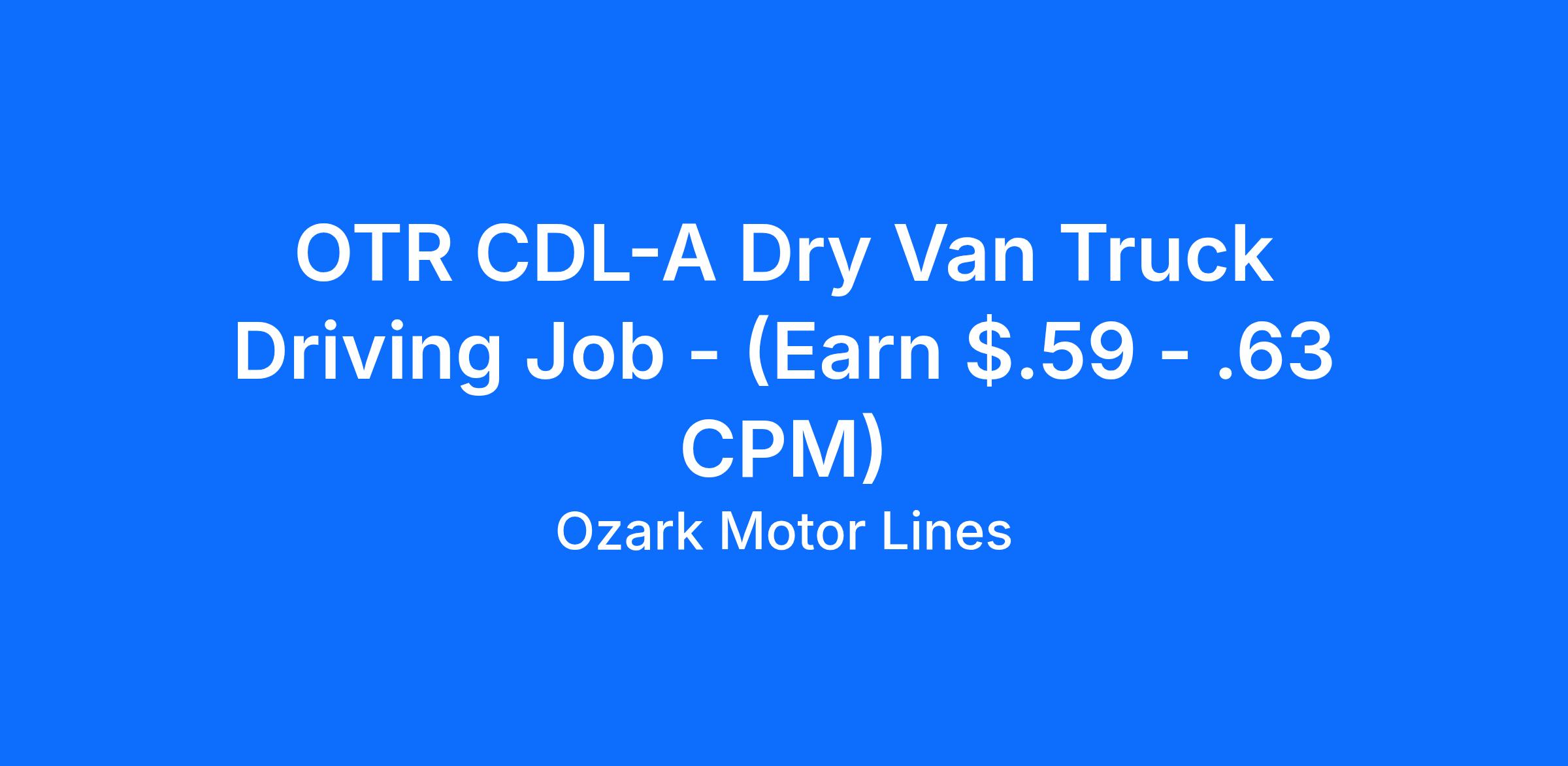 OTR CDL-A Dry Van Truck Driving Job - (Earn $.59 - .63 CPM)