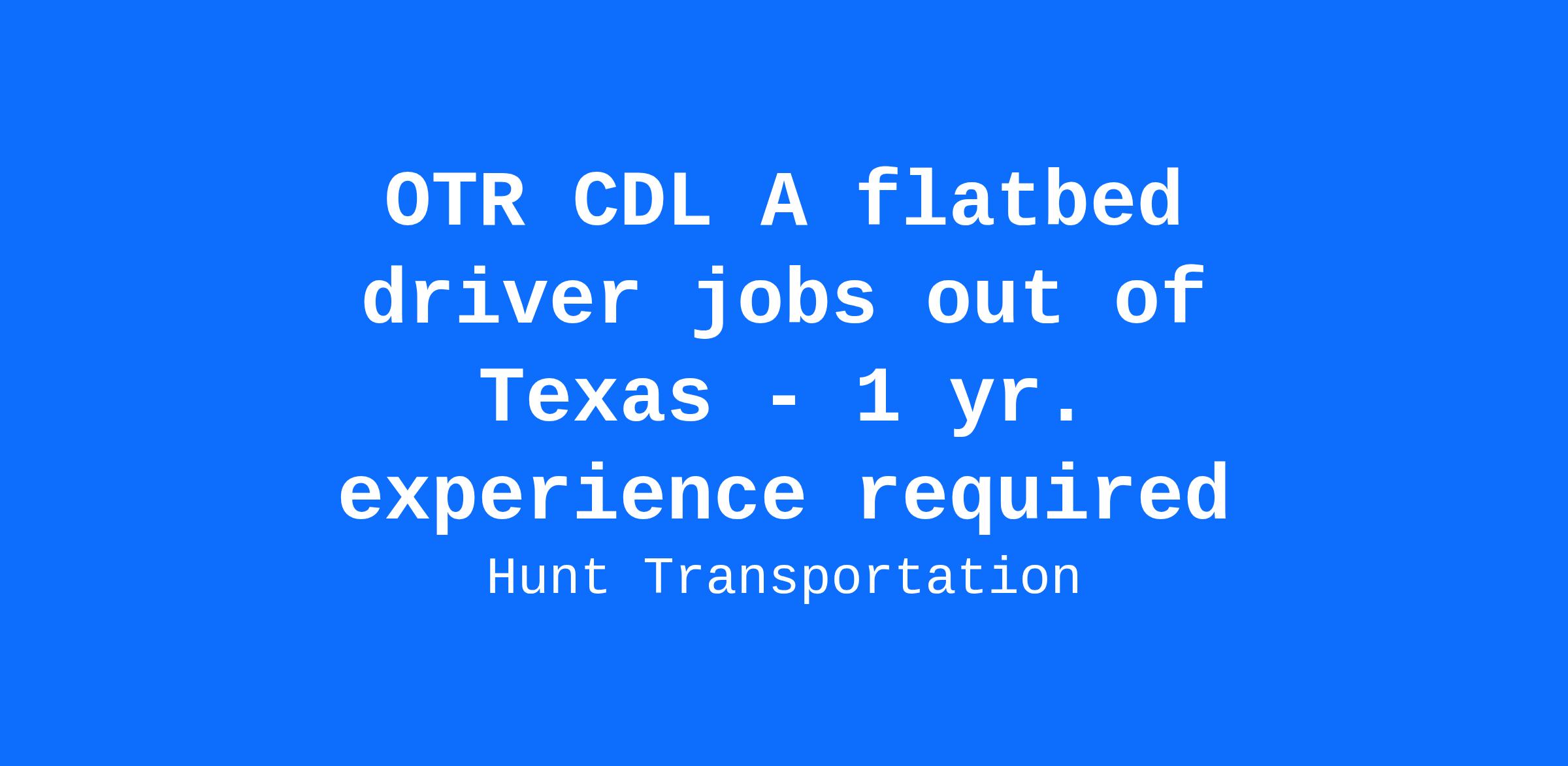 Drivers who want to travel will see the country on the Hunt Transportation national OTR fleets. These are our highest mileage fleets and home to our top-earning drivers.Salary: Top 50% average $93,347 per yearCPM: Starting pay $.65 to $.68 cpmExperience: One-year verifiable tractor trailer experience with a class A CDL