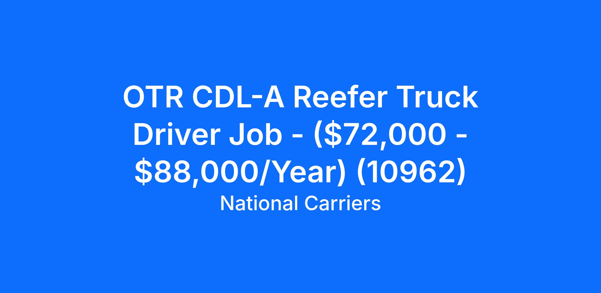 OTR CDL-A Reefer Truck Driver Job - ($72,000 - $88,000/Year) (10962)