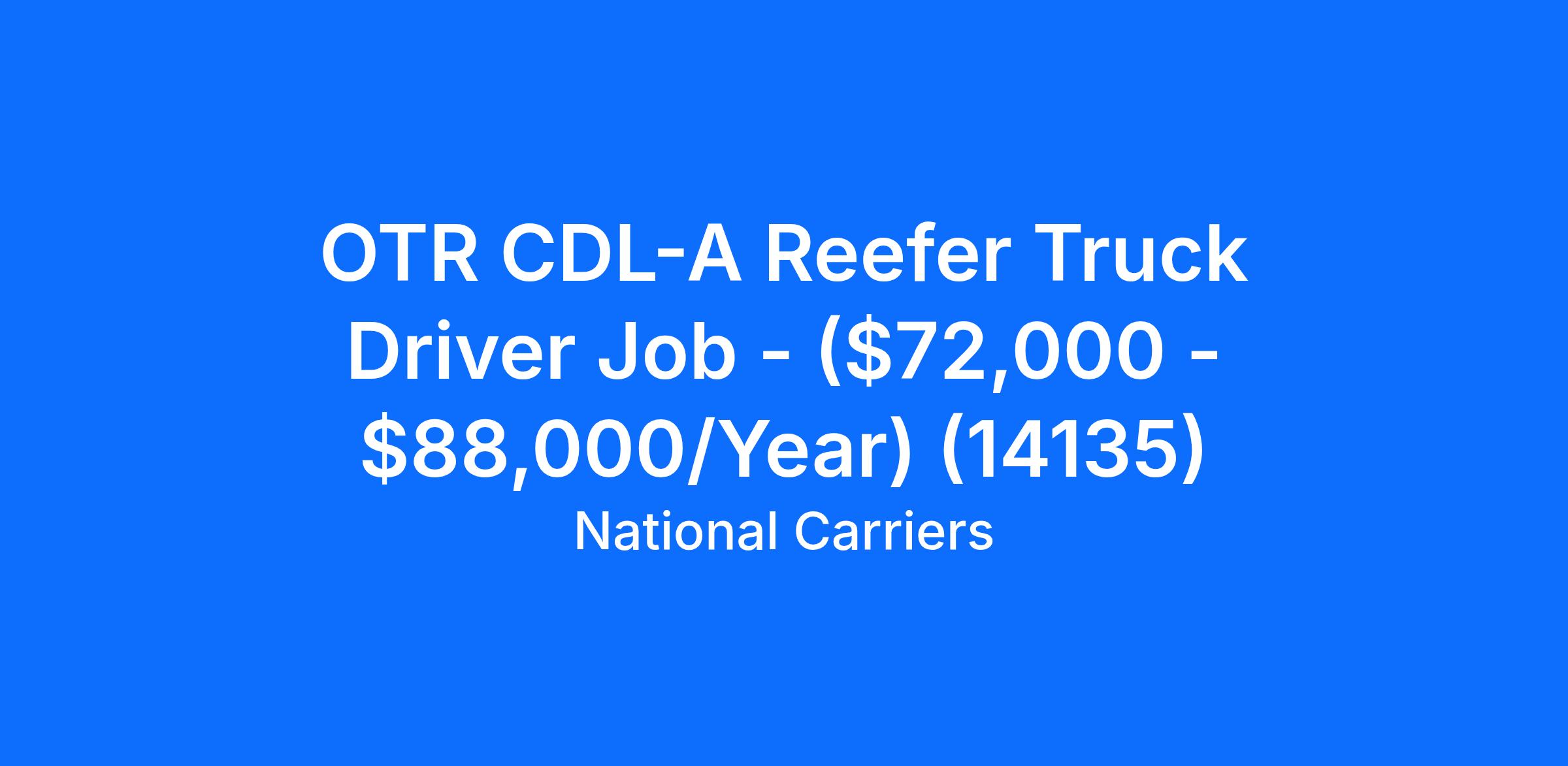 OTR CDL-A Reefer Truck Driver Job - ($72,000 - $88,000/Year) (14135)