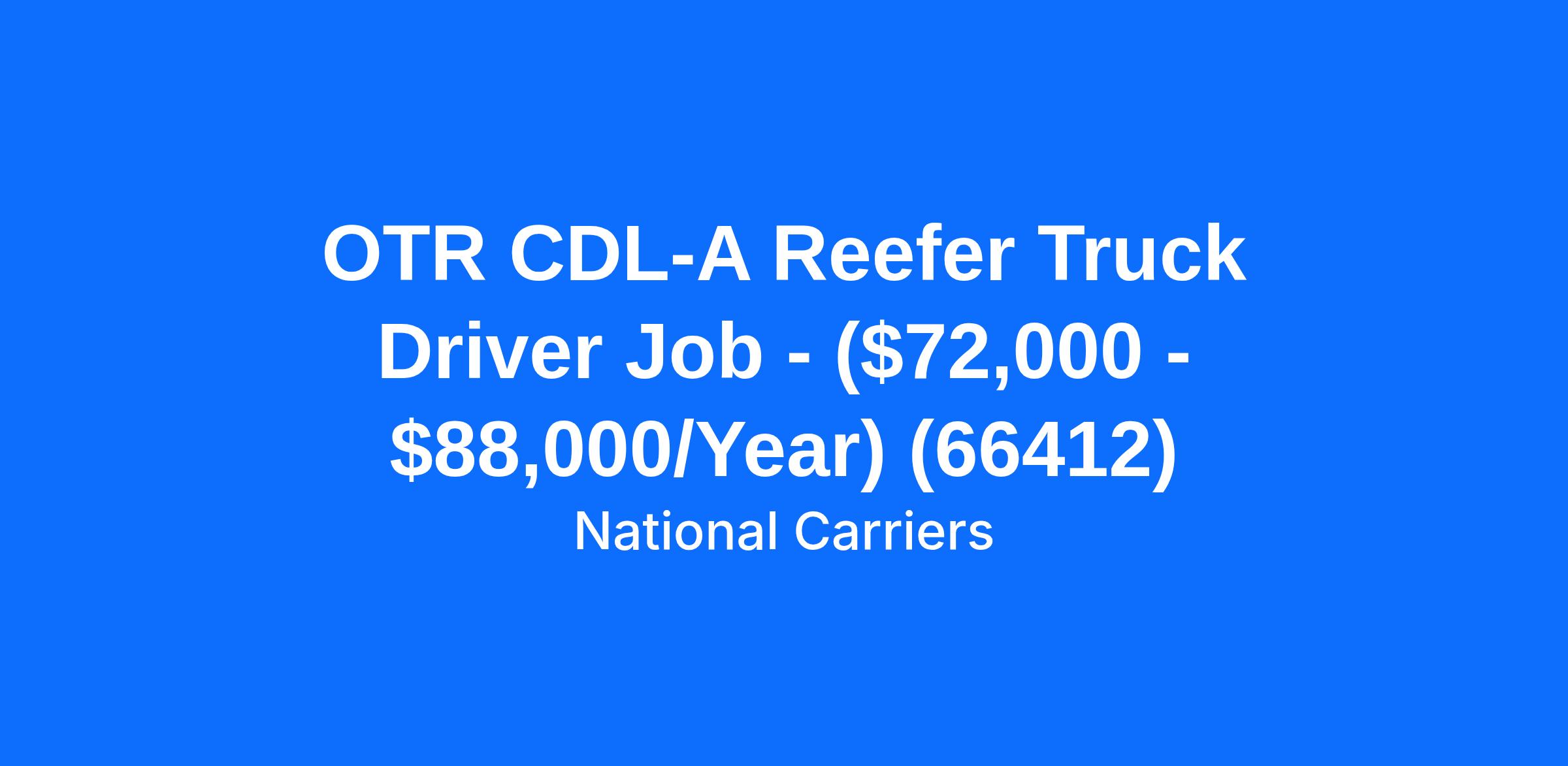 OTR CDL-A Reefer Truck Driver Job - ($72,000 - $88,000/Year) (66412)