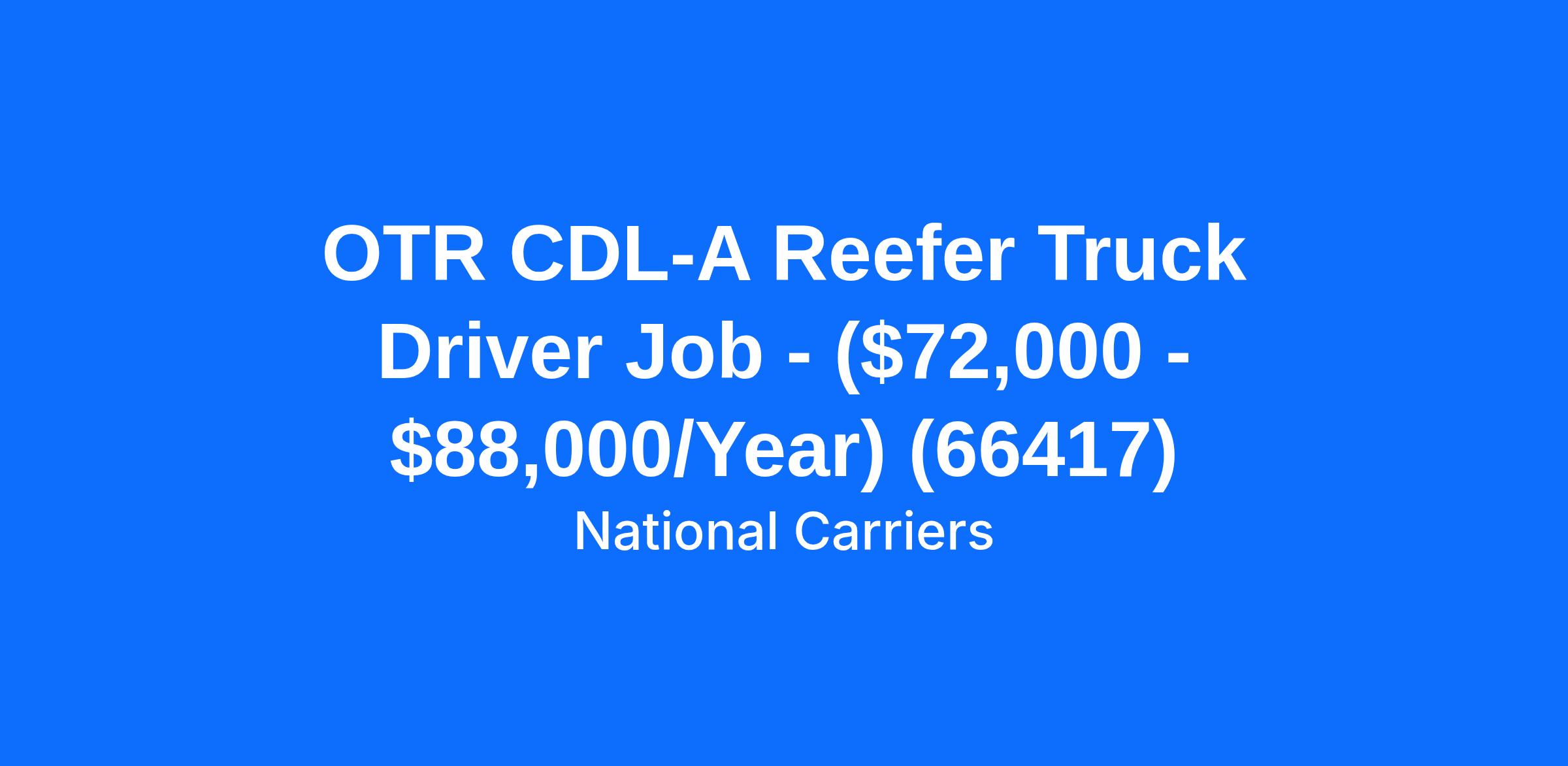 OTR CDL-A Reefer Truck Driver Job - ($72,000 - $88,000/Year) (66417)