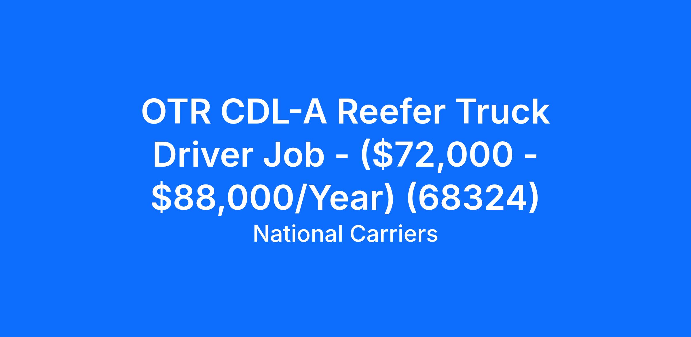 OTR CDL-A Reefer Truck Driver Job - ($72,000 - $88,000/Year) (68324)