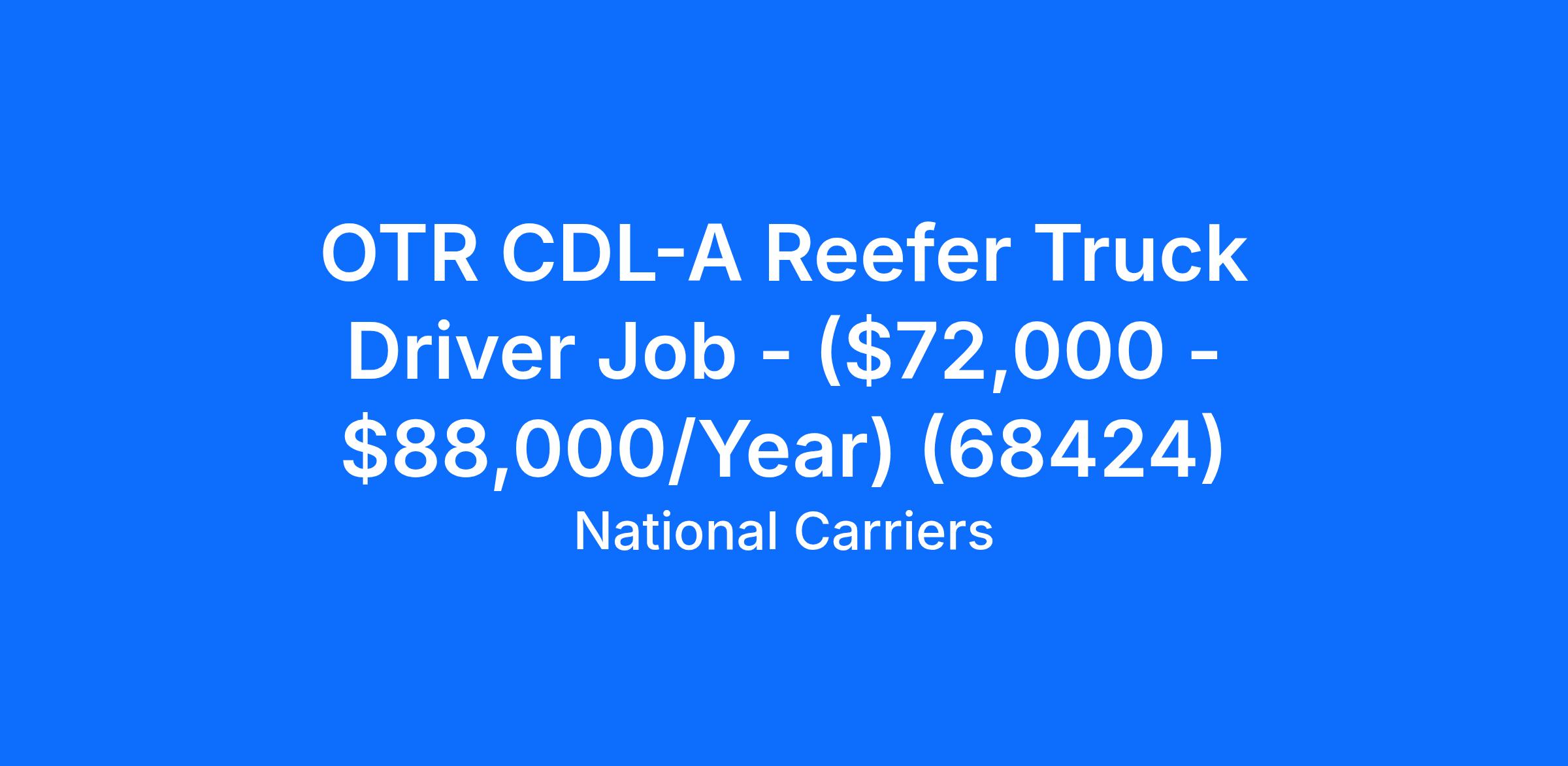 OTR CDL-A Reefer Truck Driver Job - ($72,000 - $88,000/Year) (68424)