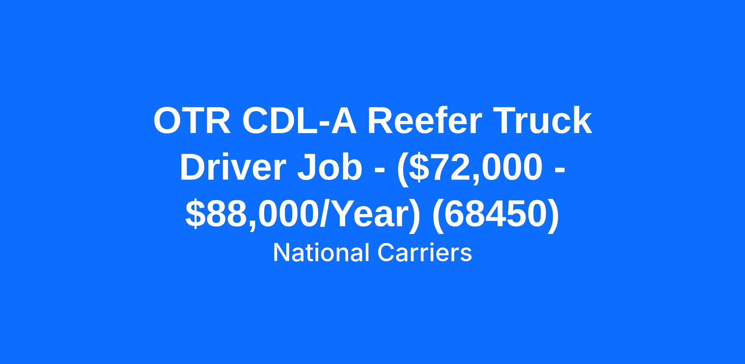 OTR CDL-A Reefer Truck Driver Job - ($72,000 - $88,000/Year) (68450)