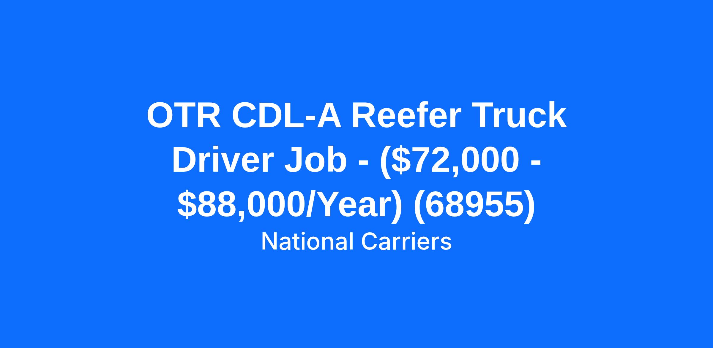 OTR CDL-A Reefer Truck Driver Job - ($72,000 - $88,000/Year) (68955)