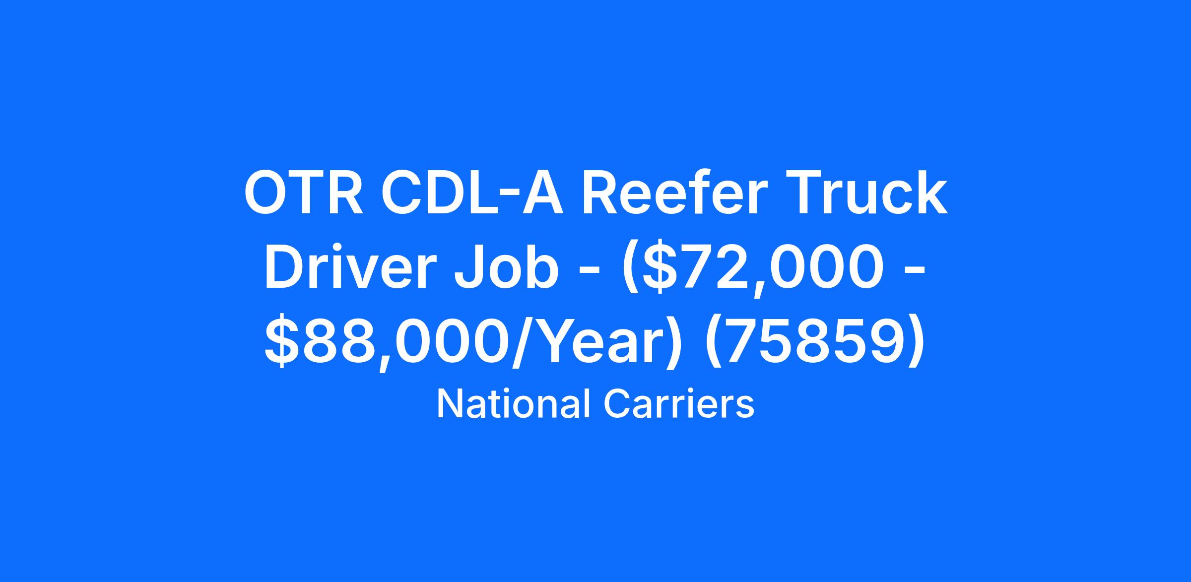 OTR CDL-A Reefer Truck Driver Job - ($72,000 - $88,000/Year) (75859)
