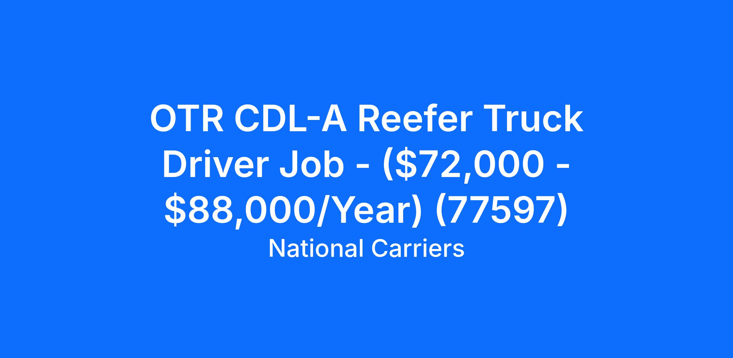 OTR CDL-A Reefer Truck Driver Job - ($72,000 - $88,000/Year) (77597)
