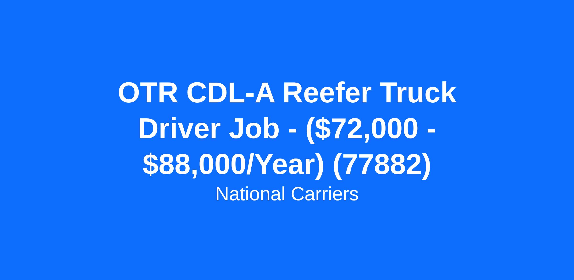 OTR CDL-A Reefer Truck Driver Job - ($72,000 - $88,000/Year) (77882)