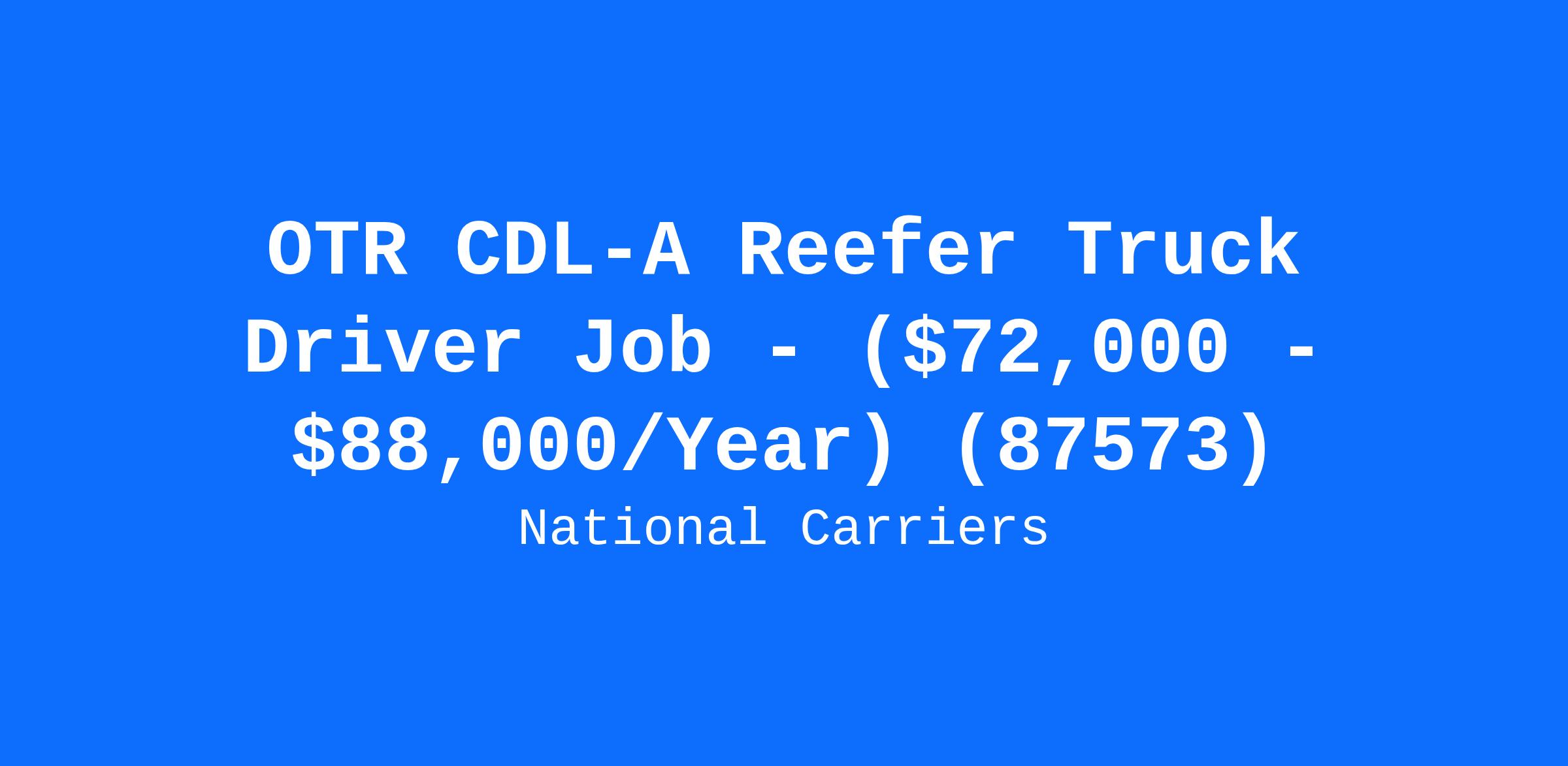 OTR CDL-A Reefer Truck Driver Job - ($72,000 - $88,000/Year) (87573)