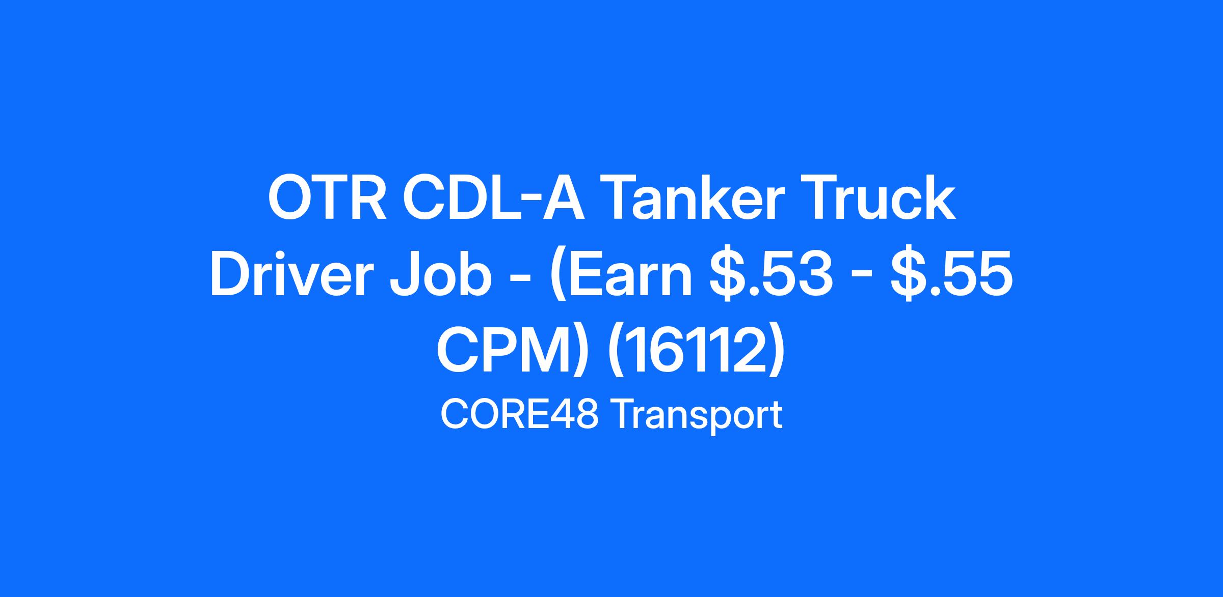 OTR CDL-A Tanker Truck Driver Job - (Earn $.53 - $.55 CPM) (16112)
