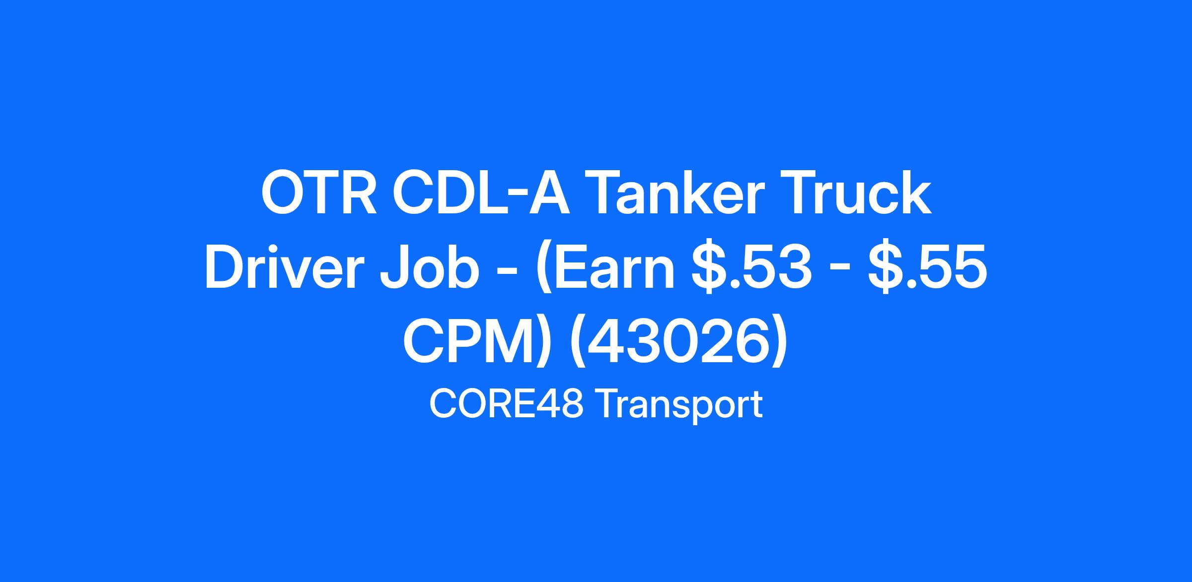OTR CDL-A Tanker Truck Driver Job - (Earn $.53 - $.55 CPM) (43026)