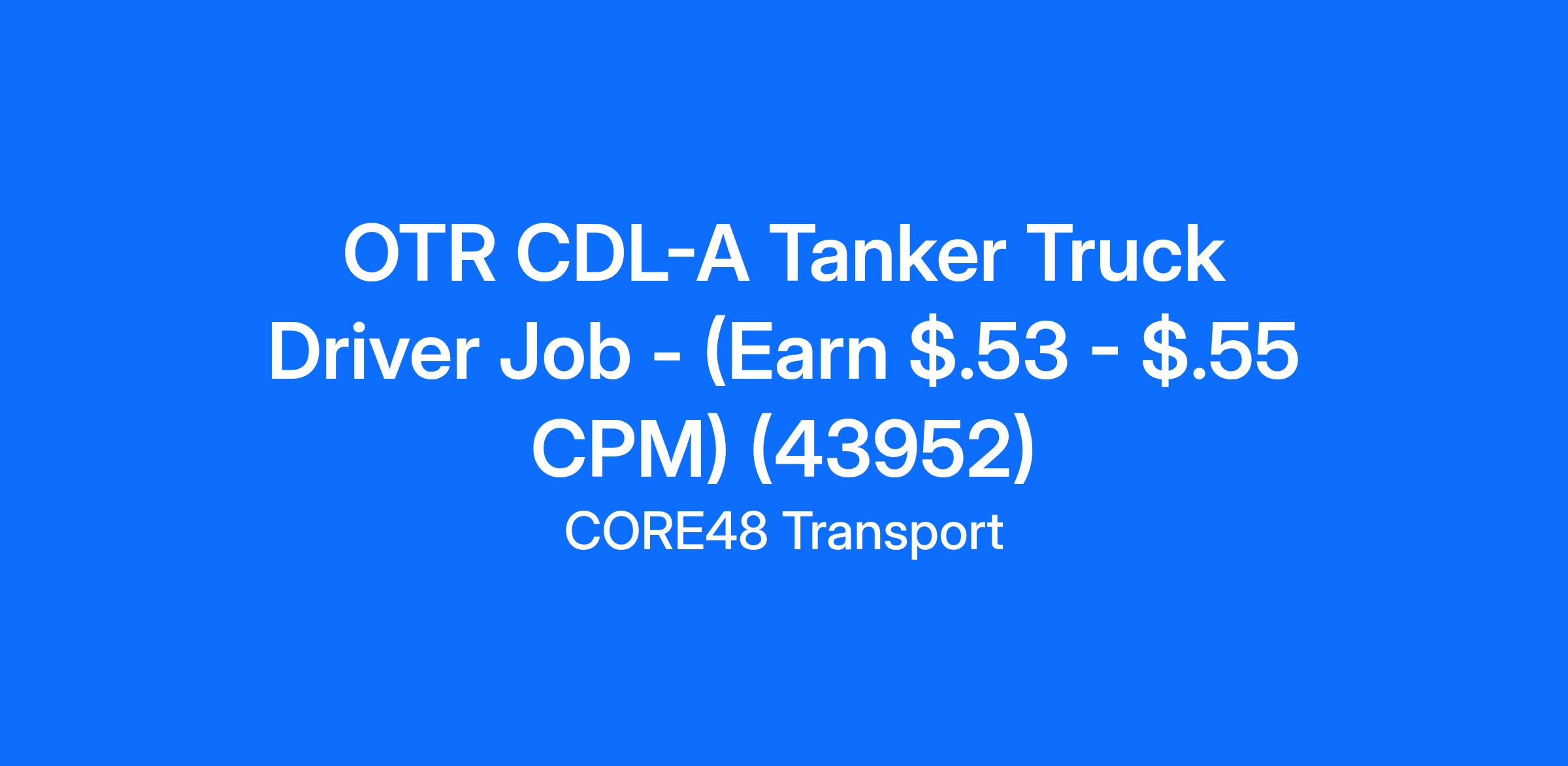OTR CDL-A Tanker Truck Driver Job - (Earn $.53 - $.55 CPM) (43952)