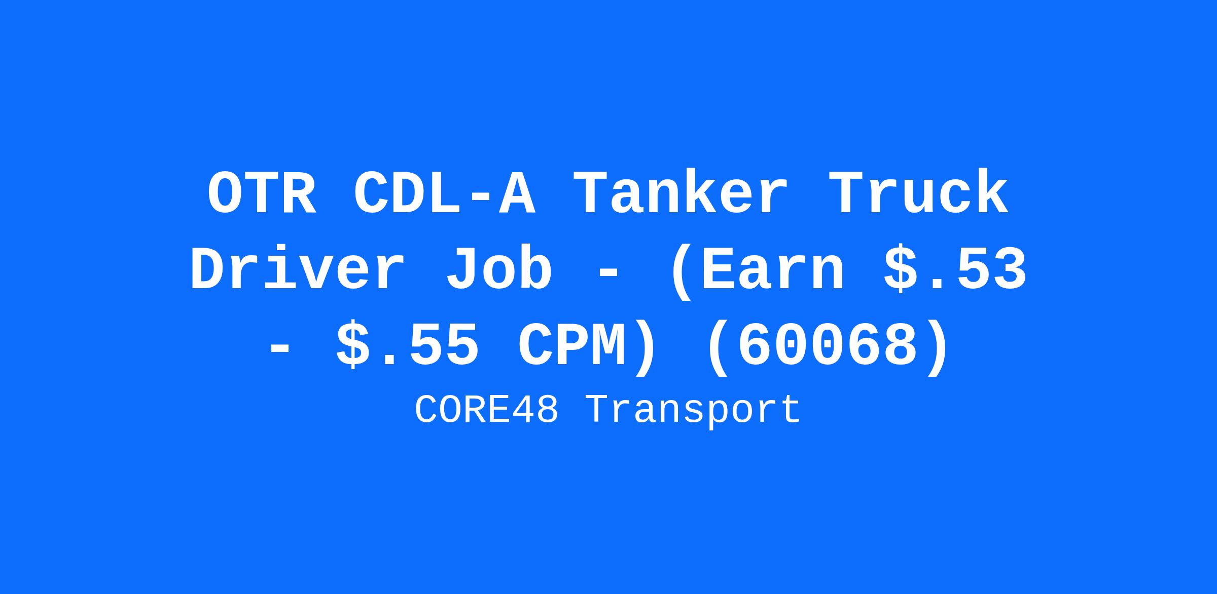 OTR CDL-A Tanker Truck Driver Job - (Earn $.53 - $.55 CPM) (60068)