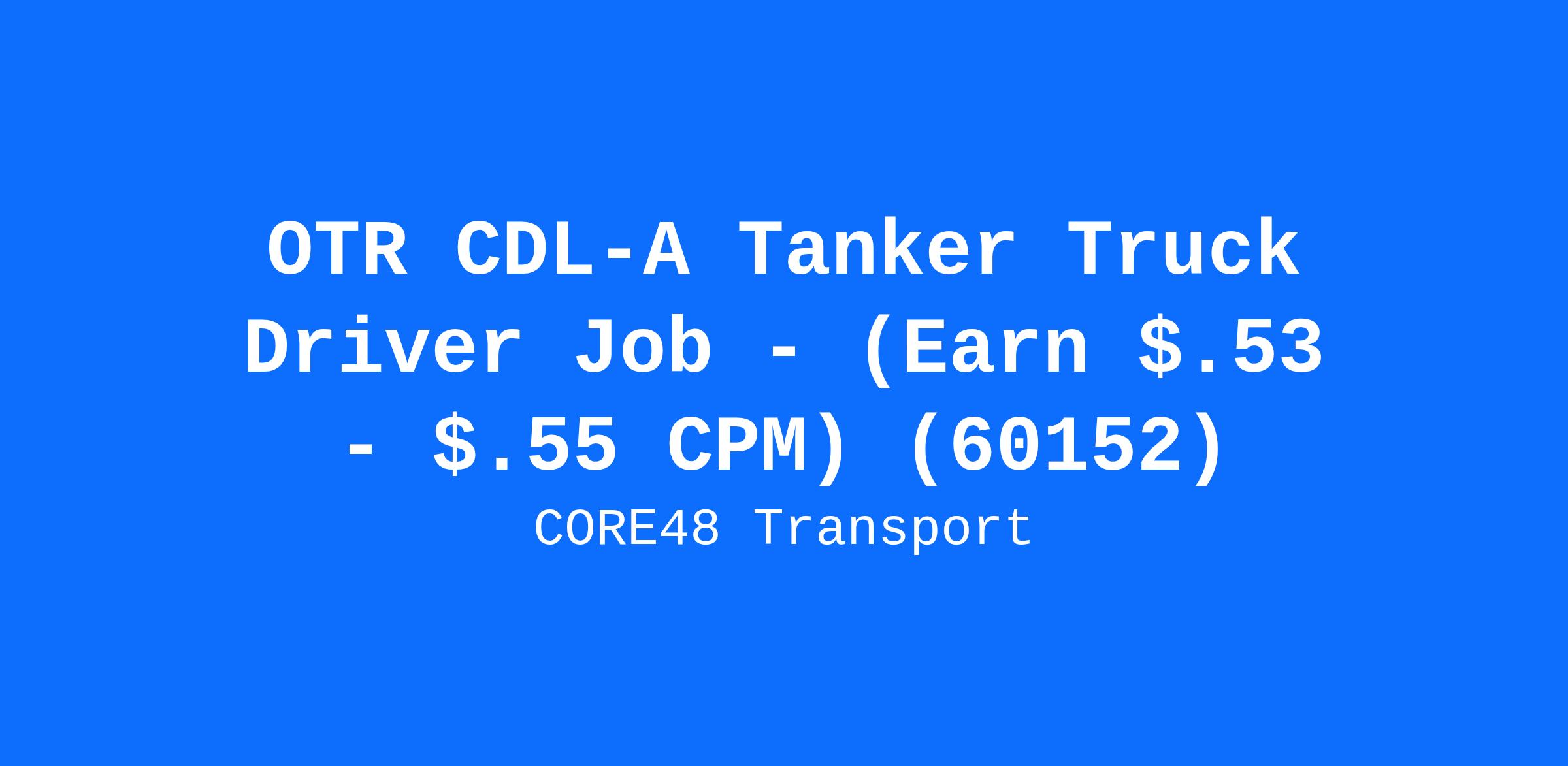 OTR CDL-A Tanker Truck Driver Job - (Earn $.53 - $.55 CPM) (60152)