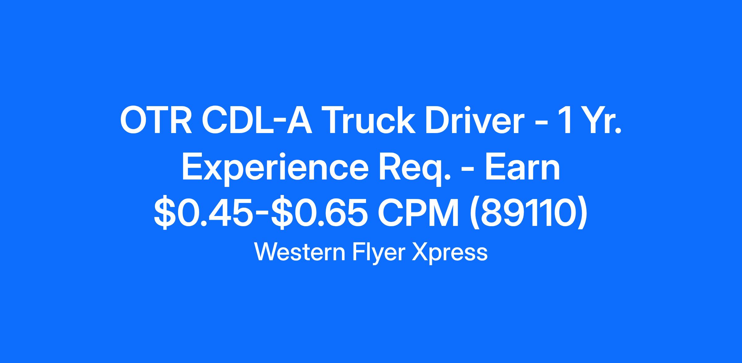 OTR CDL-A Truck Driver - 1 Yr. Experience Req. - Earn $0.45-$0.65 CPM (89110)