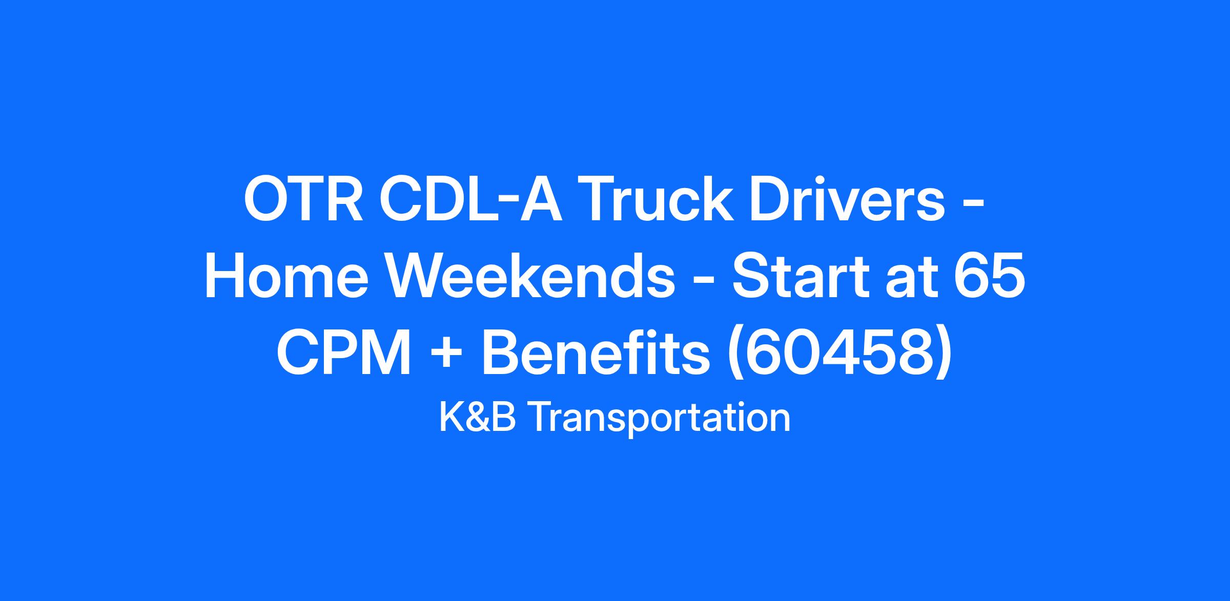 OTR CDL-A Truck Drivers - Home Weekends - Start at 65 CPM + Benefits (60458)