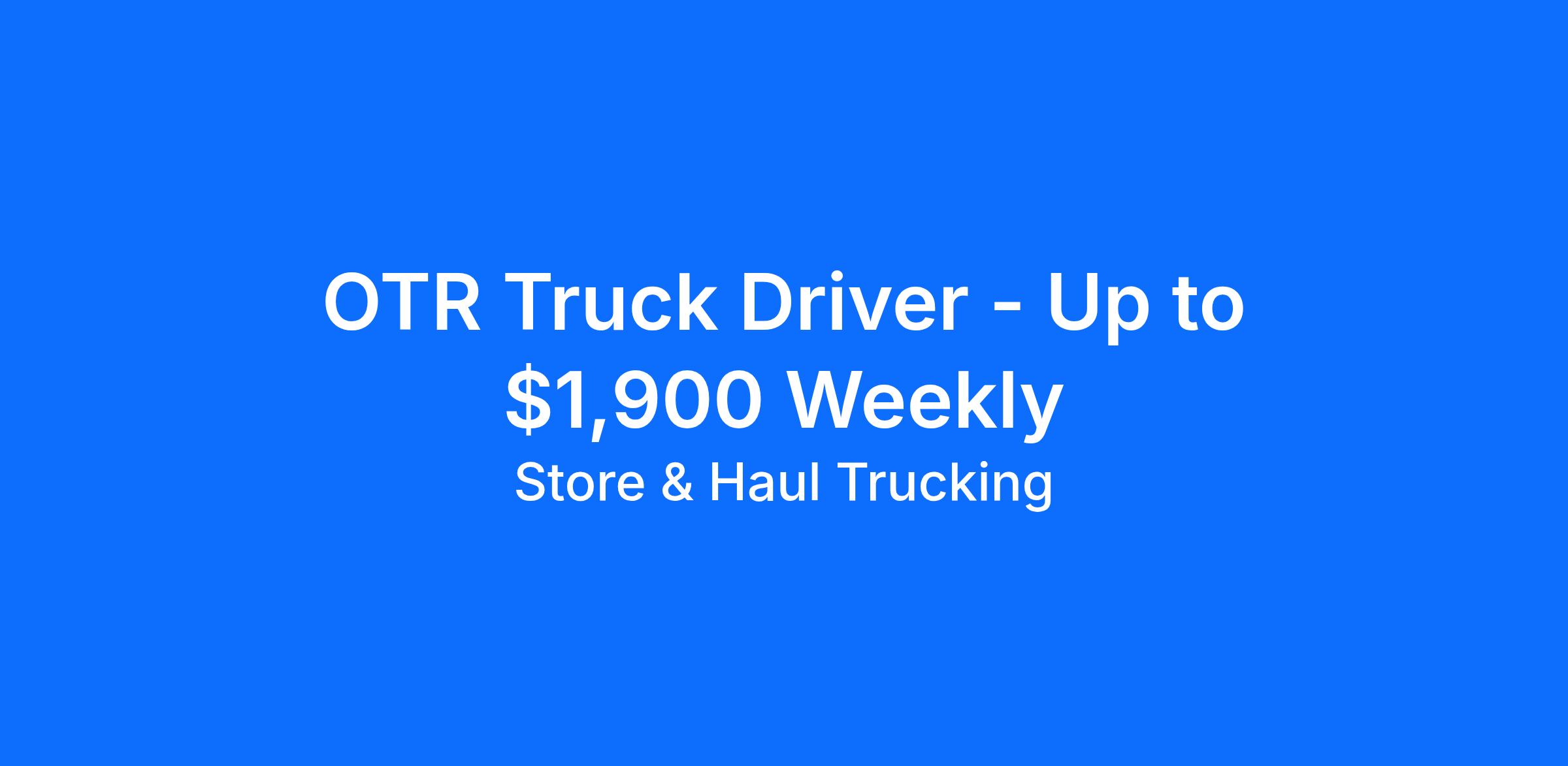 OTR Truck Driver - Up to $1,900 Weekly