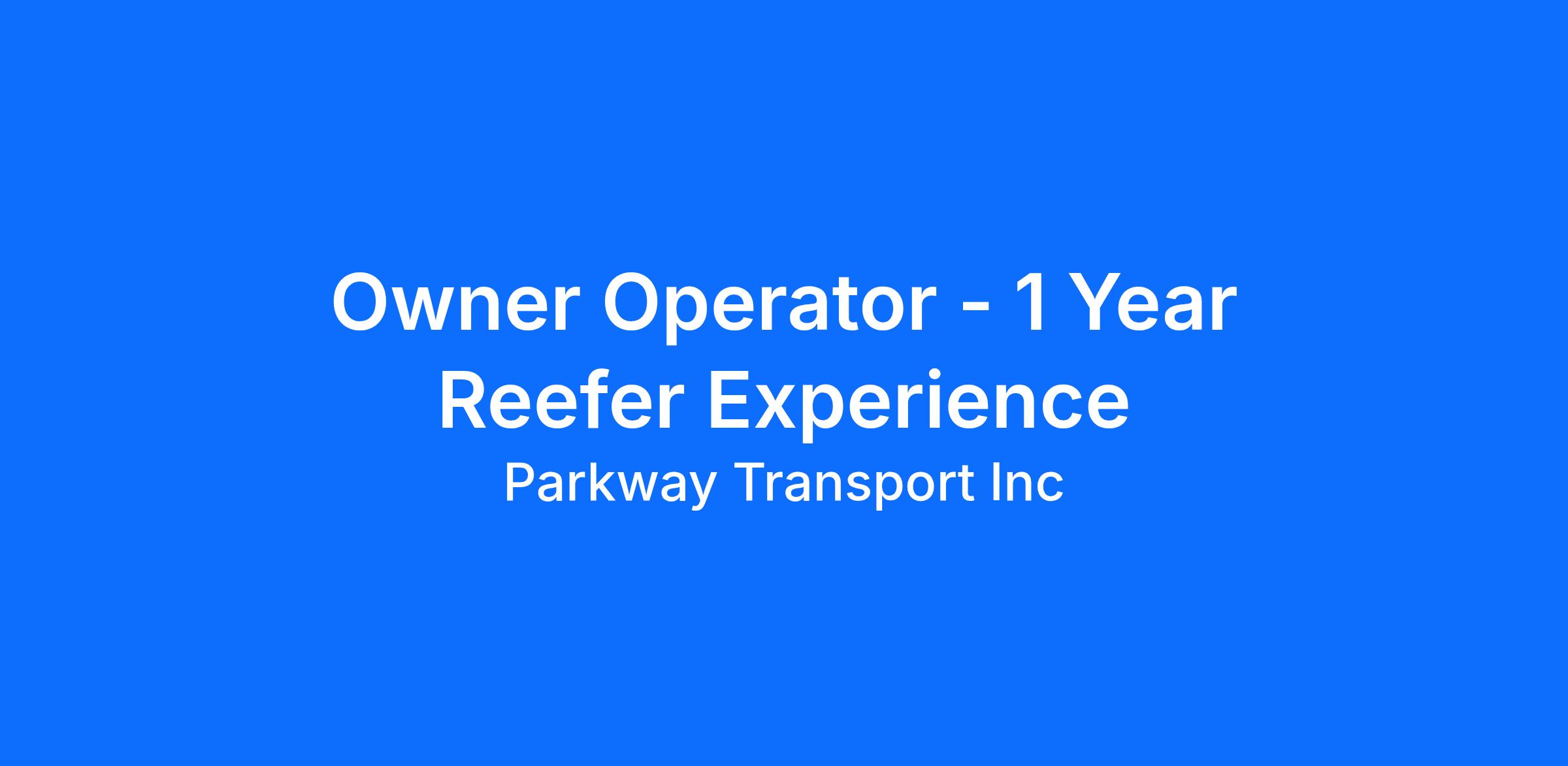 Parkway Transport is Contracting Reefer Owner Operators in Texas Owner Operator Trucking Jobs Owner Operator Advantages: $1.24 per mile FSC 2,800-3,200 Miles/Week – Paid Loaded or Empty Weekly Home Time Optional runs to the Northwest - earn an extra $0.06 CPM! Ask for details on stop-and-drop pay Paid permits and plates Michelin Tire discounts at nearly wholesale prices Drivewyze to bypass weigh stations Optional insurance Weekly settlements Reefer Job Requirements: Must have valid CDL-A At least 1 year of Class-A CDL driving experience required At least 1 year of Reefer experience required Must own sleeper truck (2008 model or older) Must be proficient in English (As per FMCSA) Must be a minimum of 21 years of age Must live in Texas About Parkway Transport Parkway Transport's reputation is built on providing superior transportation and logistics services to our customers across the nation. We do that by hiring the very best owner-operators in Texas and providing them with everything they need to succeed. Do you have what it takes to provide superior service? Are you looking for a partnership with a company that will value your contributions and respects your need for flexibility? Did you just answer yes? Let's talk! Call Us Today (844) ###-####a25371ca-cde7-4fb6-ba87-2cf40b156c8b