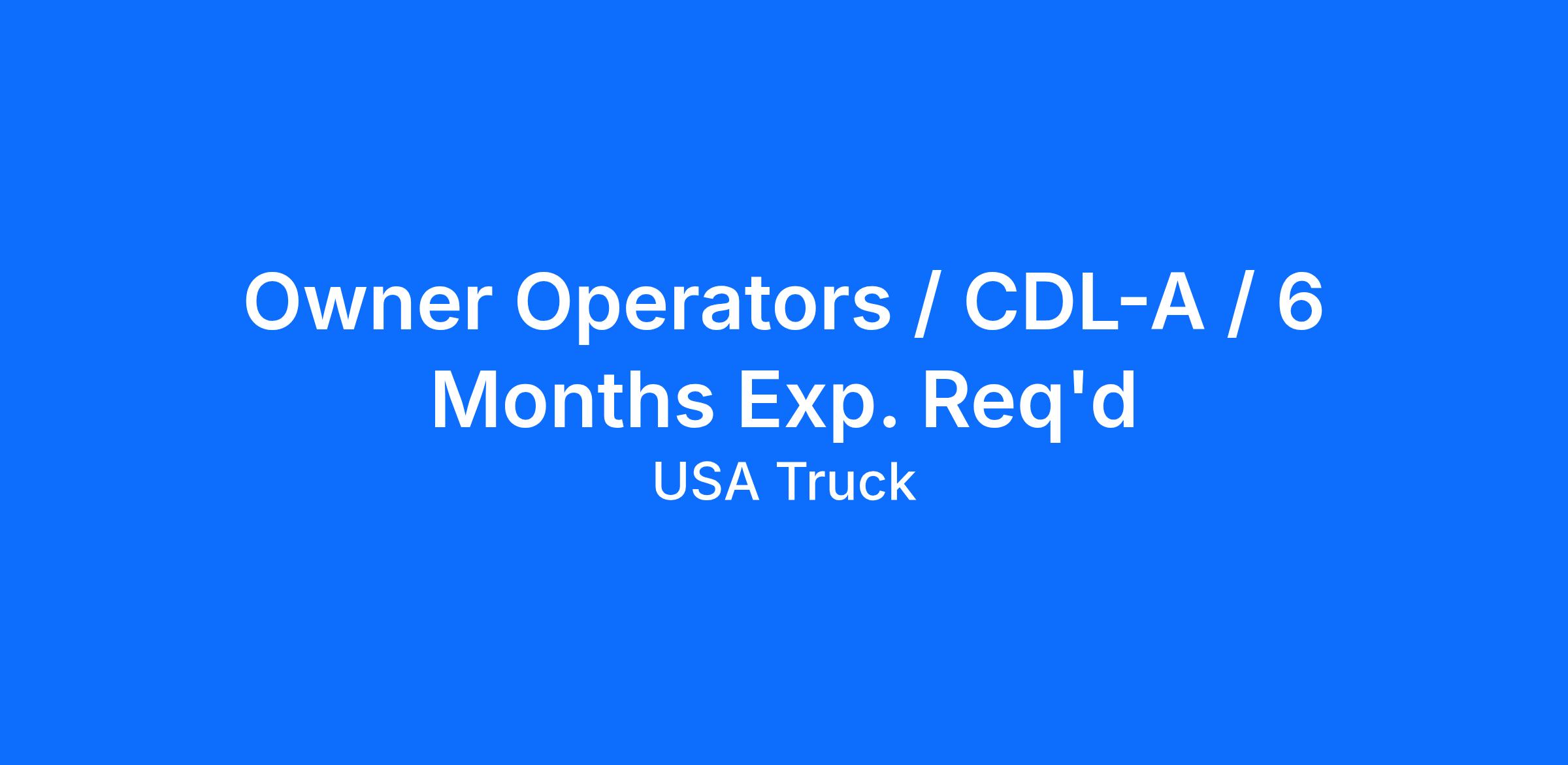 Owner Operators / CDL-A / 6 Months Exp. Req'd