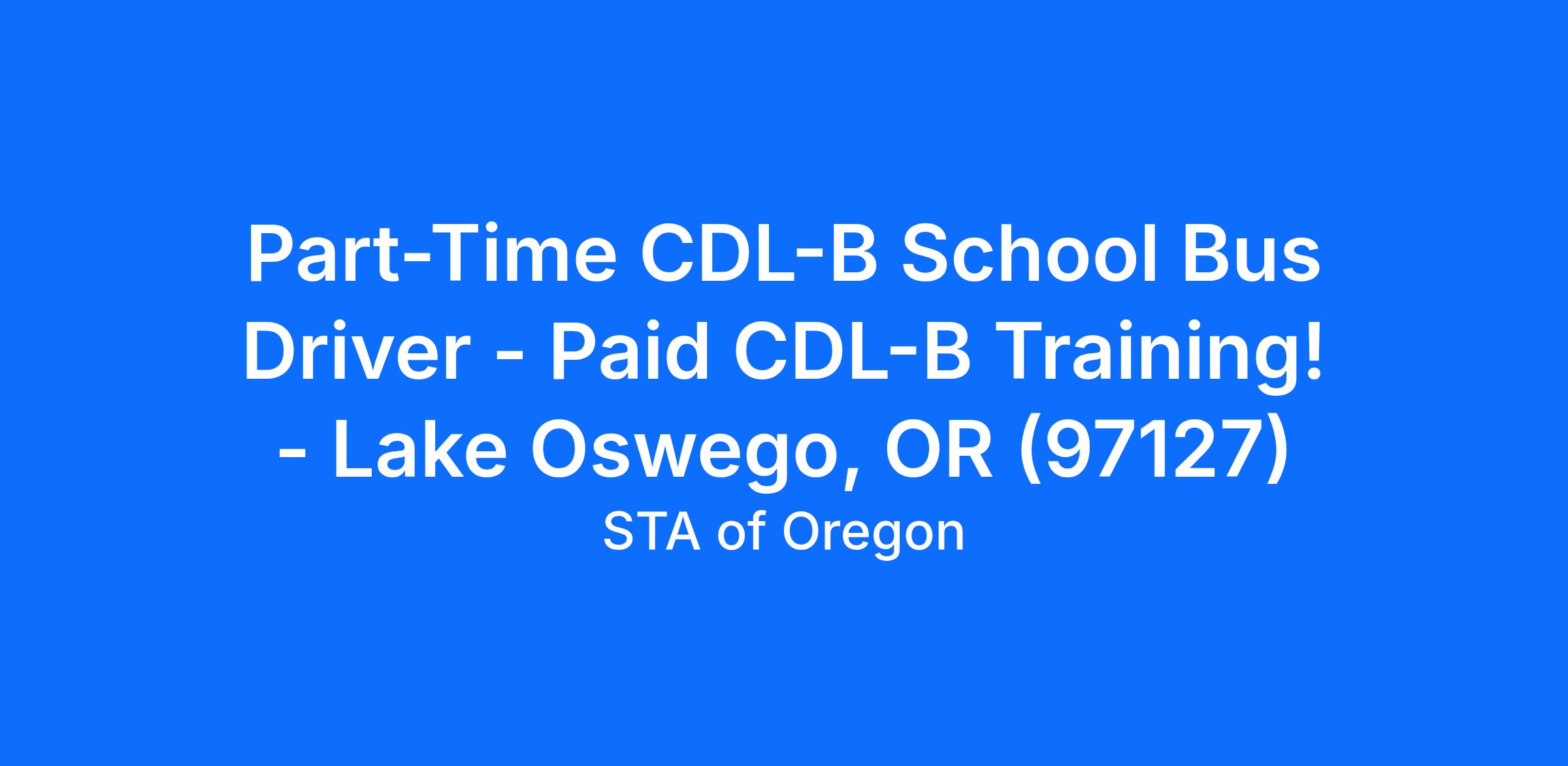 Part-Time CDL-B School Bus Driver - Paid CDL-B Training! - Lake Oswego, OR (97127)