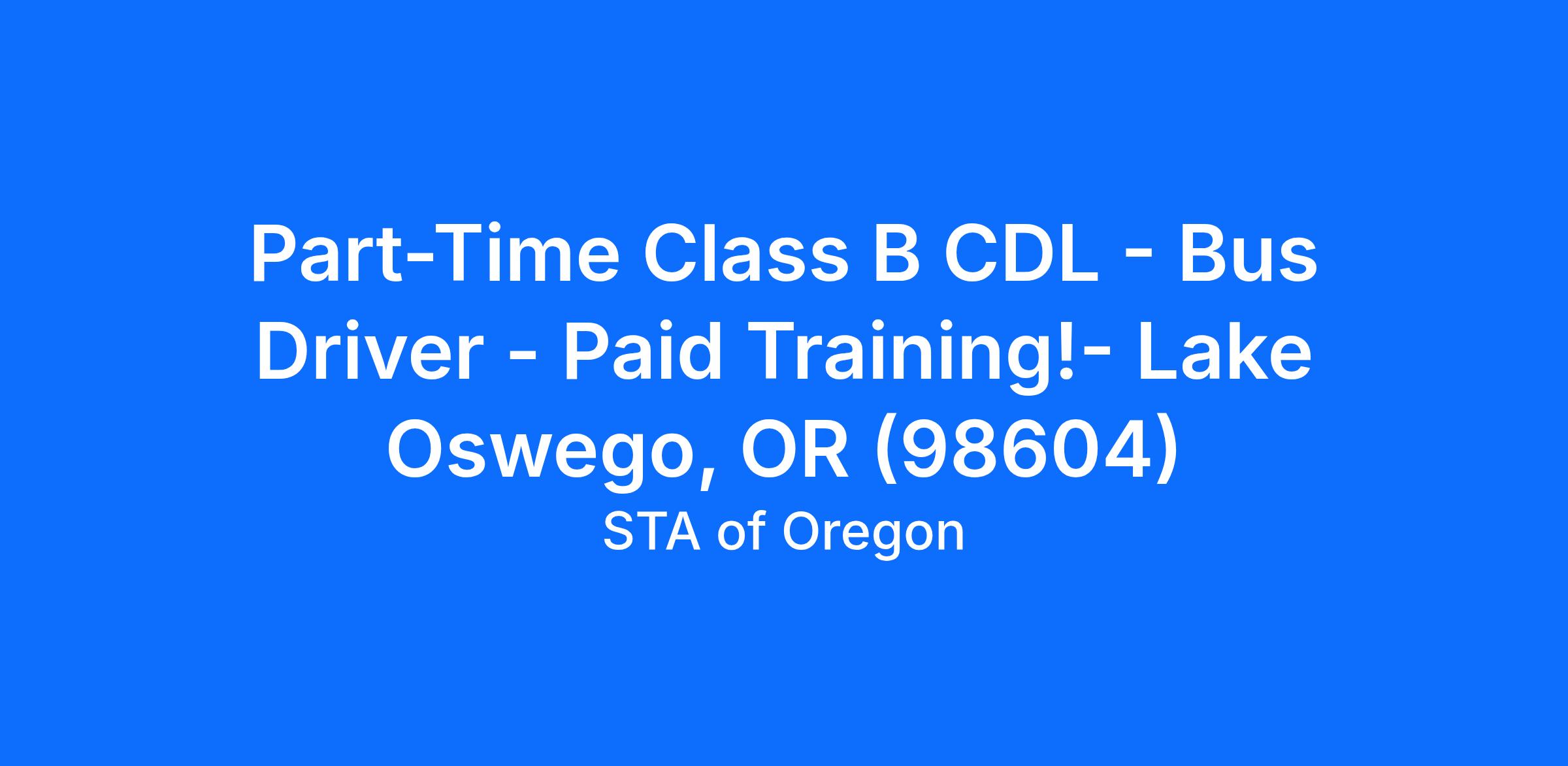 Part-Time Class B CDL - Bus Driver - Paid Training!- Lake Oswego, OR (98604)