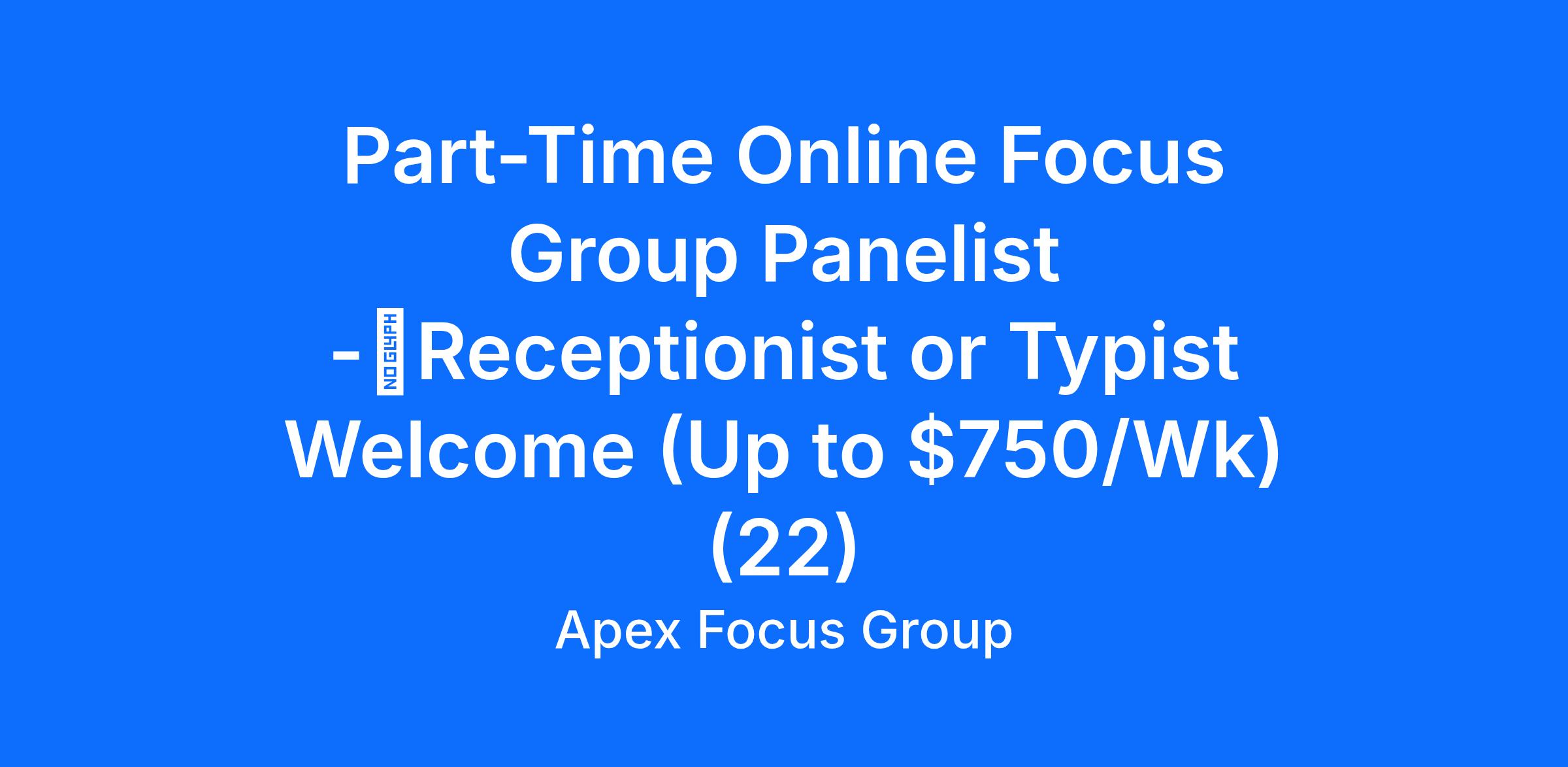 Part-Time Online Focus Group Panelist -�Receptionist or Typist Welcome (Up to $750/Wk) (22)