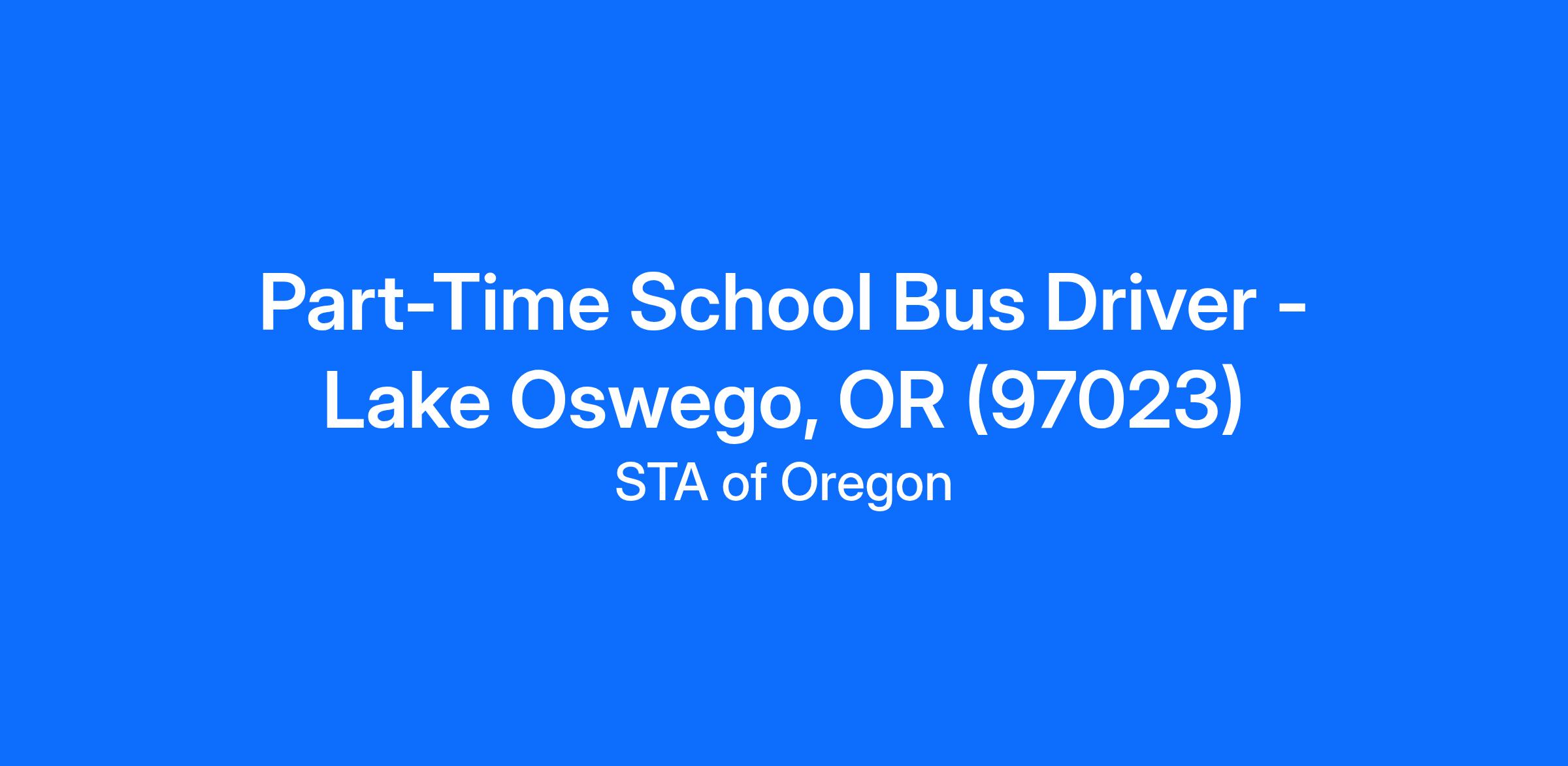 Part-Time School Bus Driver - Lake Oswego, OR (97023)