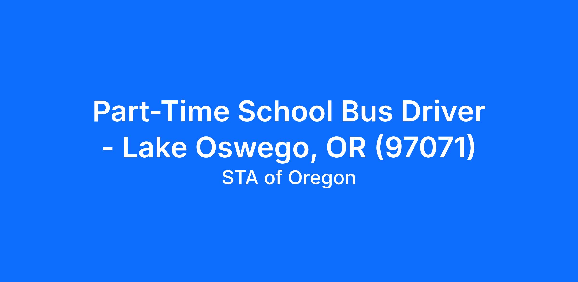 Part-Time School Bus Driver - Lake Oswego, OR (97071)