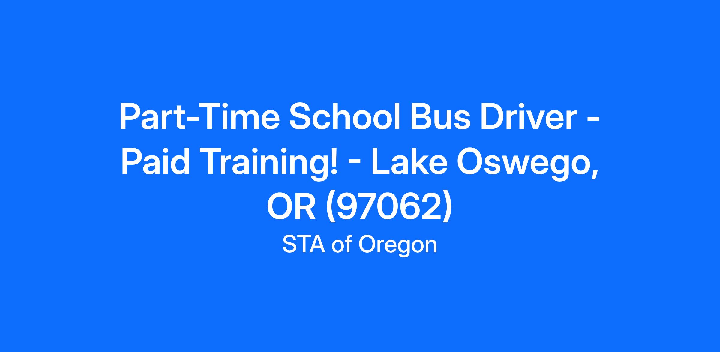 Part-Time School Bus Driver - Paid Training! - Lake Oswego, OR (97062)