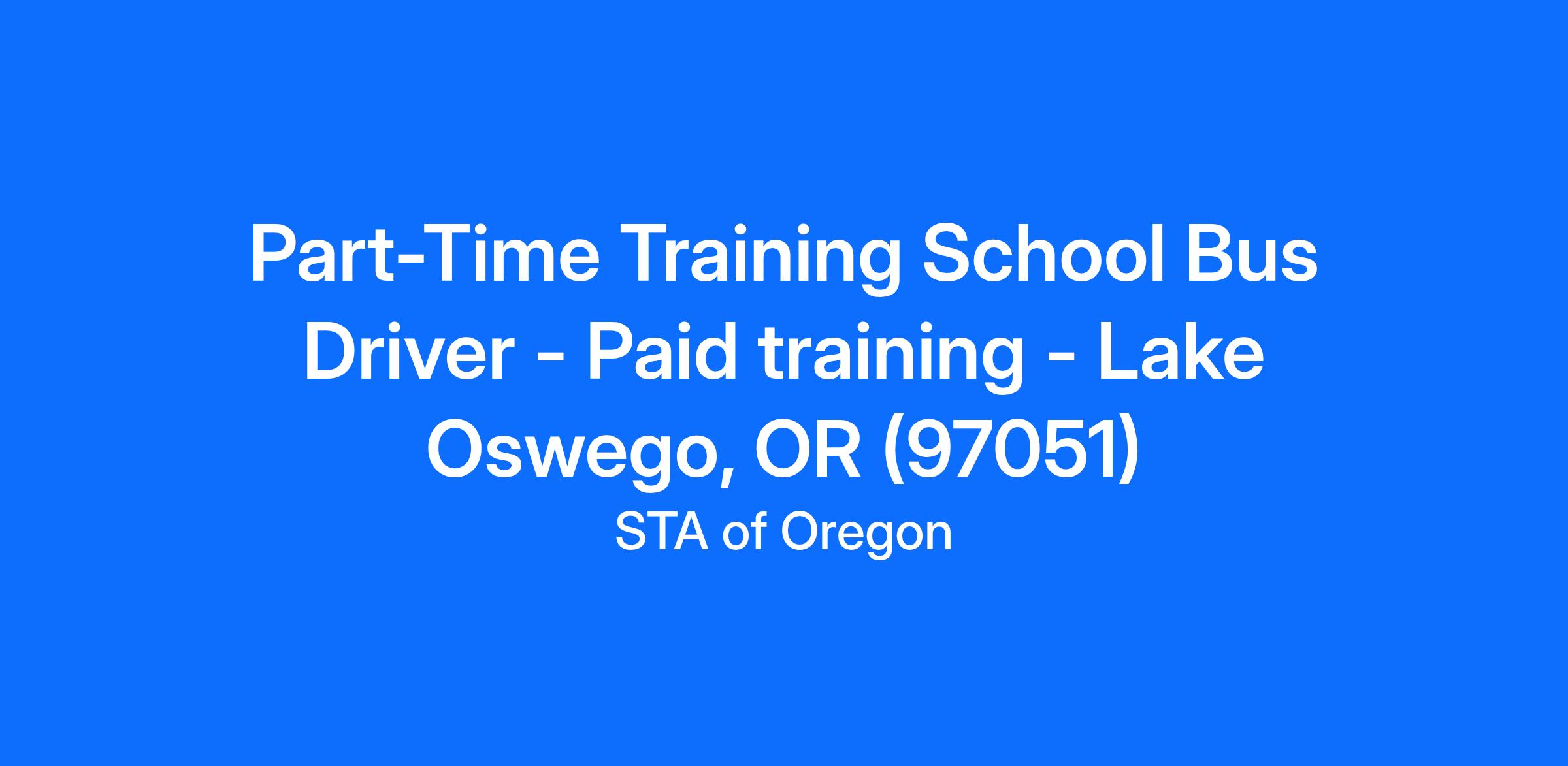 Part-Time Training School Bus Driver - Paid training - Lake Oswego, OR (97051)