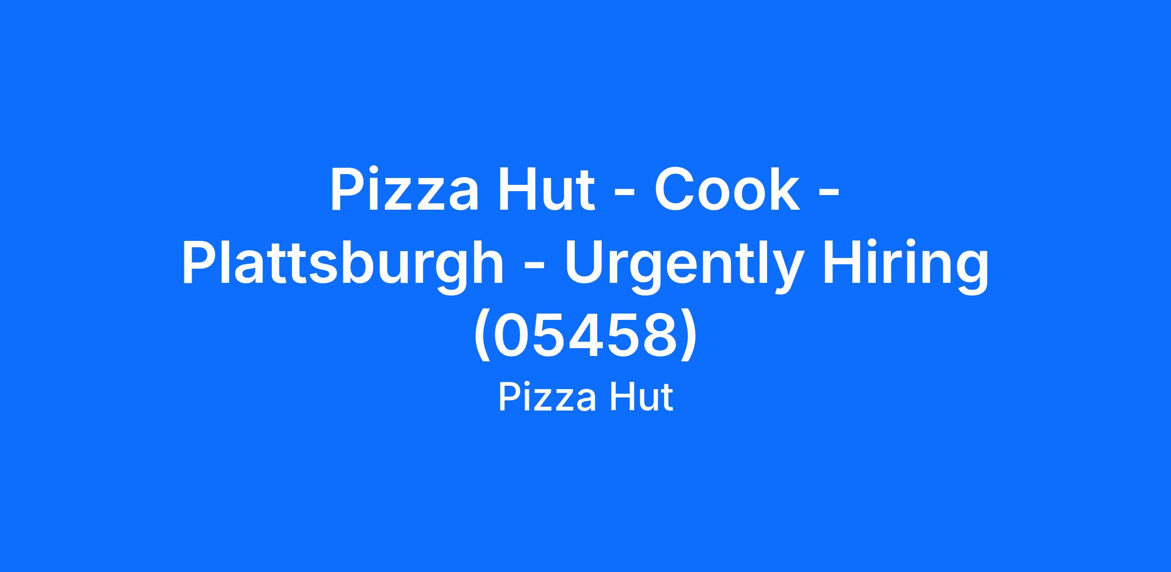 Pizza Hut - Cook - Plattsburgh - Urgently Hiring (05458)