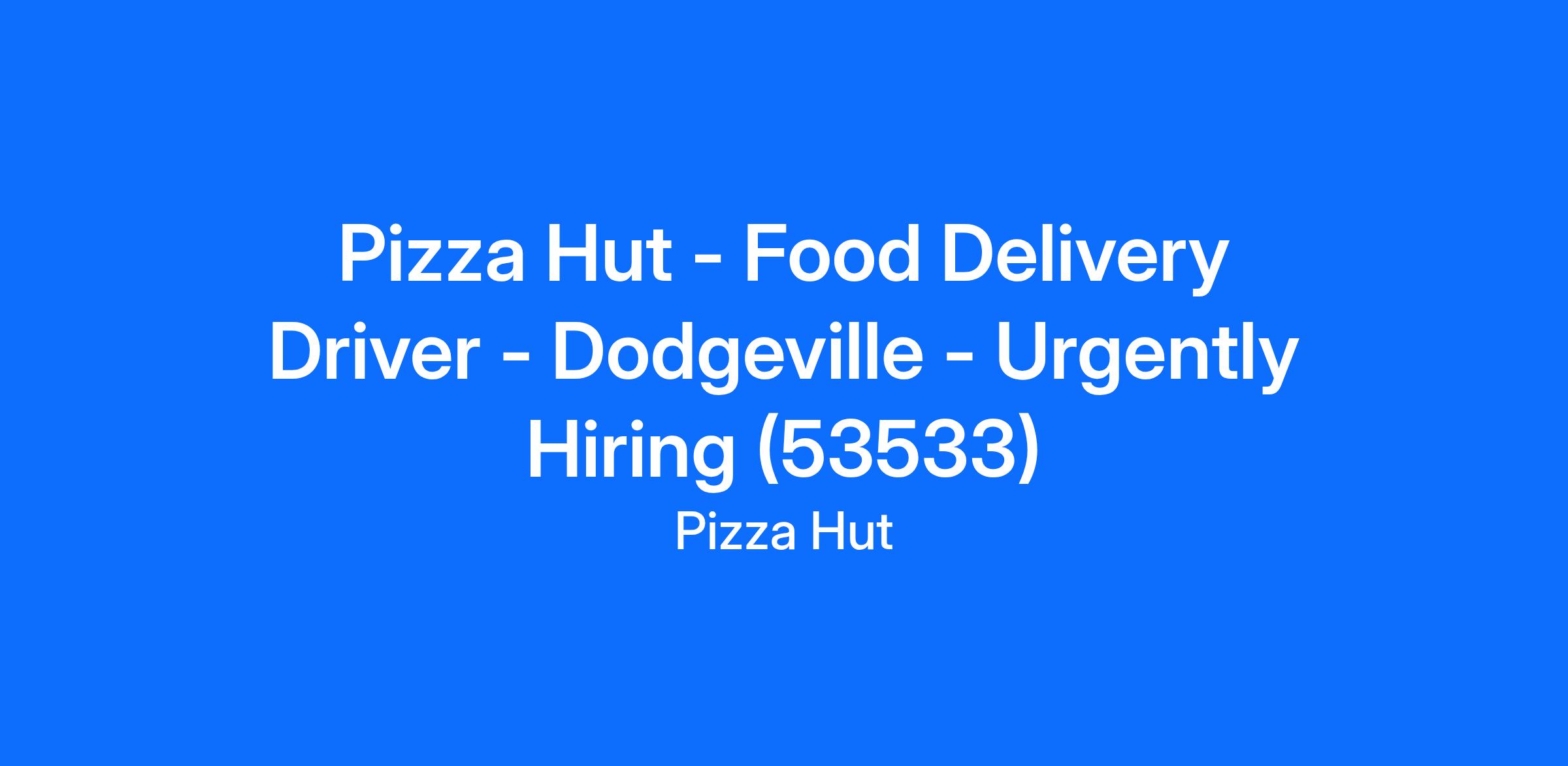 Pizza Hut - Food Delivery Driver - Dodgeville - Urgently Hiring (53533)